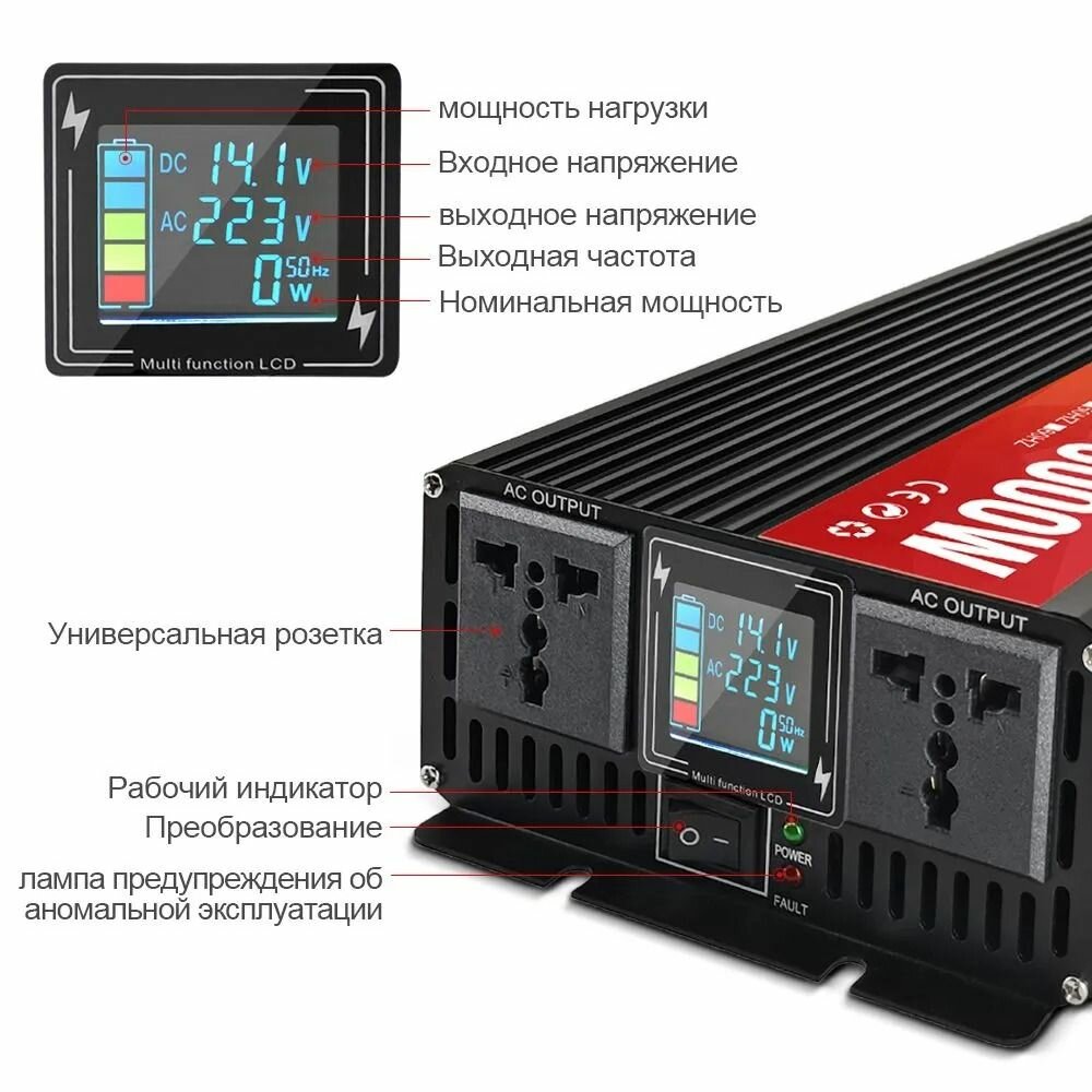 Автомобильный инвертор 5000 Вт 12В-220В чистый синус