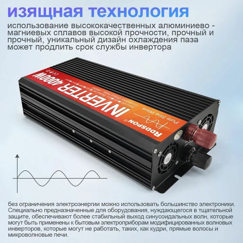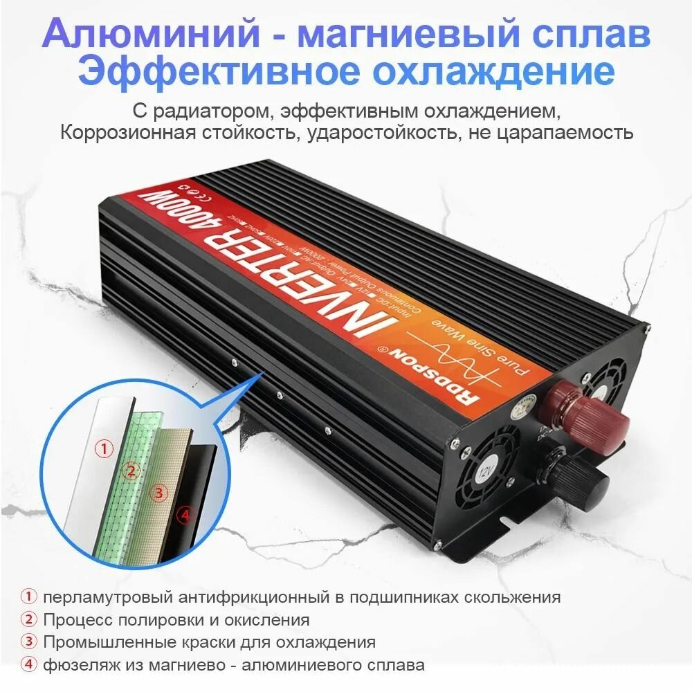 Автомобильный инвертор 4000Вт 12в-220в Чистый синус