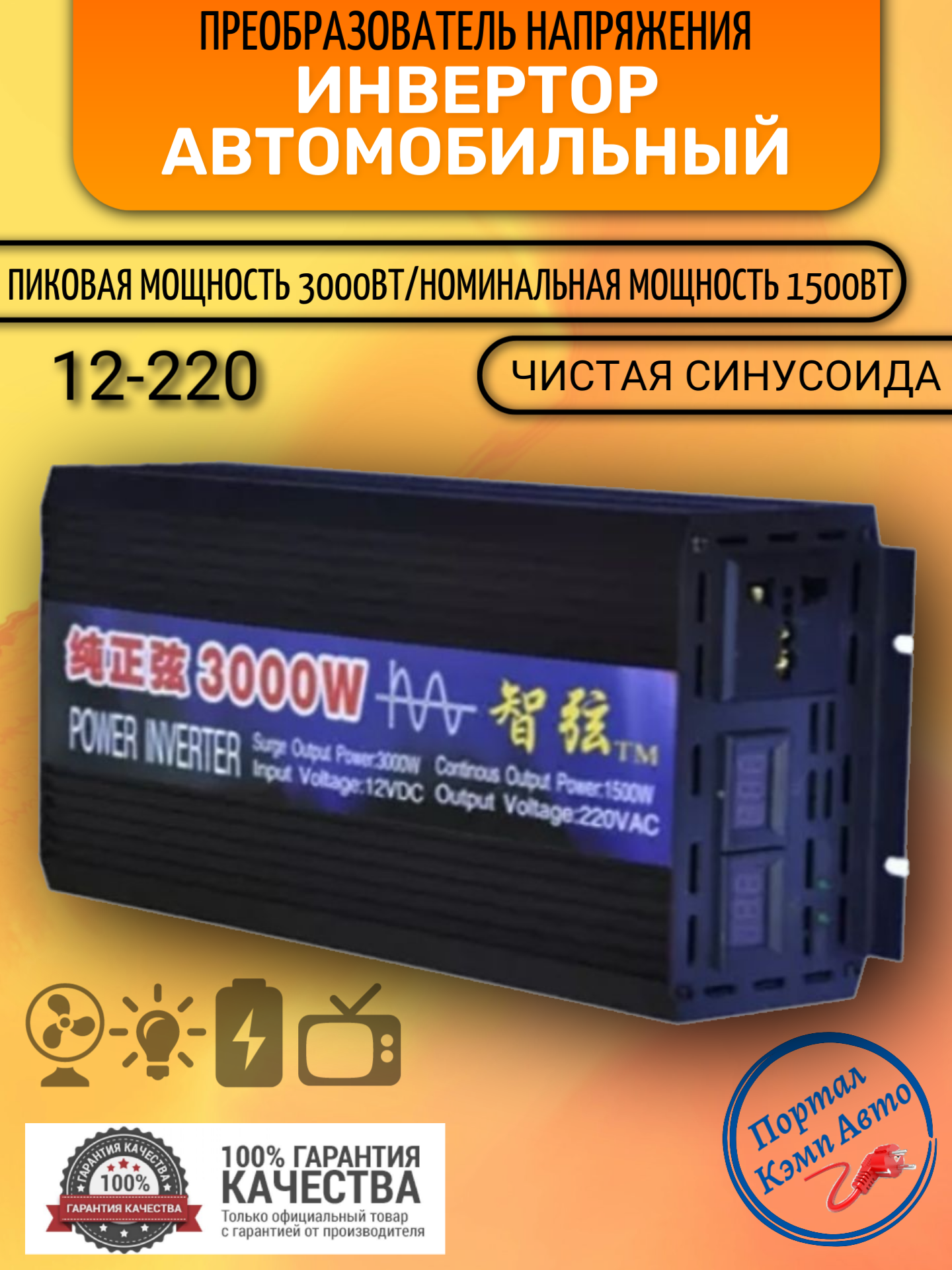 Ниже Вы можете прочитать отзывы на Автомобильный преобразователь напряжения 3000 Вт 12В-220В инвертор автомобильный 3000w 12v-220v Чистый синус, ознакомится с подробными характеристиками, посмотреть интересные обзоры и фотографии на Автомобильный преобразователь напряжения 3000 Вт 12В-220В инвертор автомобильный 3000w 12v-220v Чистый синус.