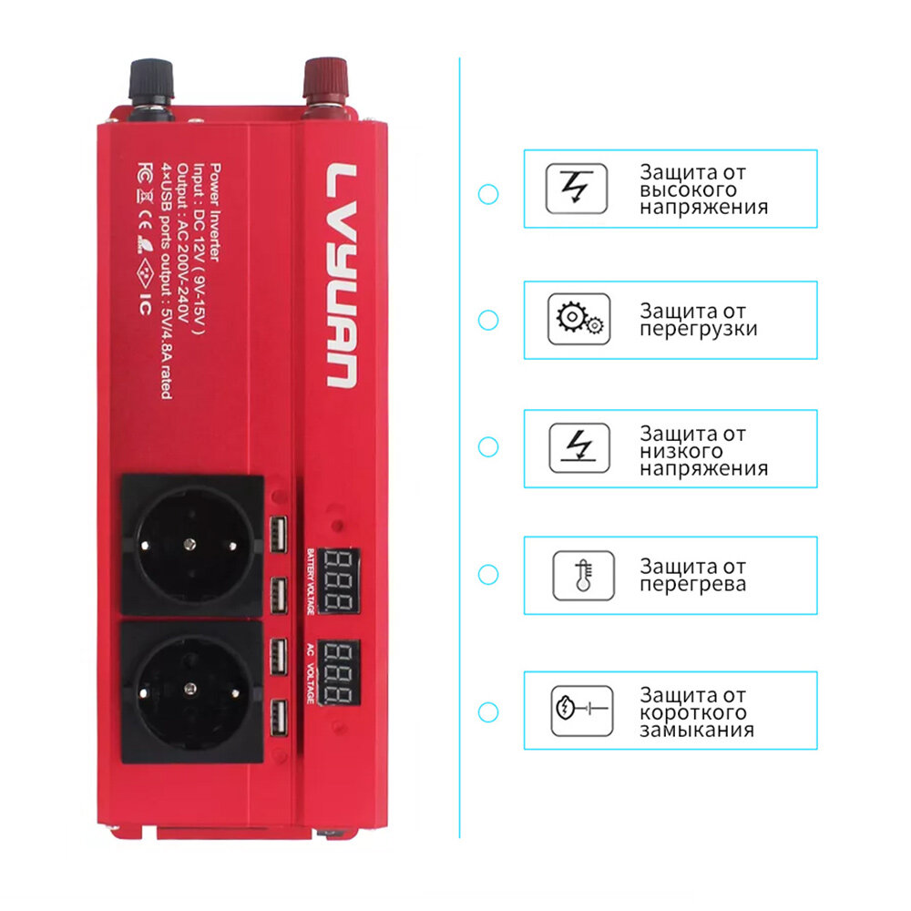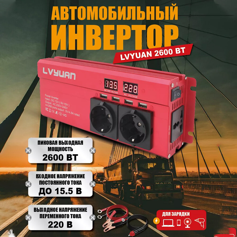 2600W(пиковая мощность) DC12V до 220V 1000W номинальная мощность инвертор 4 USB порта интересное: