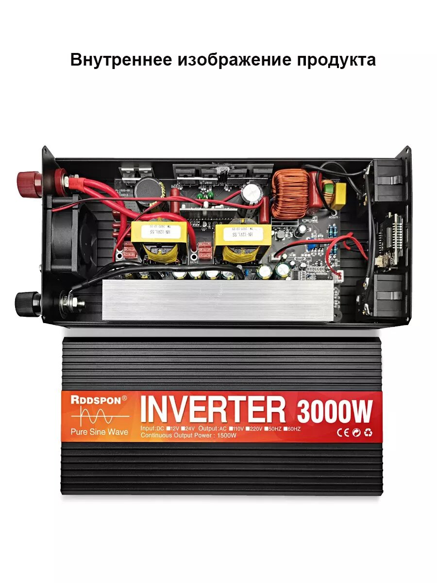 Автомобильный инвертор 3000W, 12В-220В, чистая синусоида, двойной выход RDDSPON, солнечная энергия. Аварийное питание