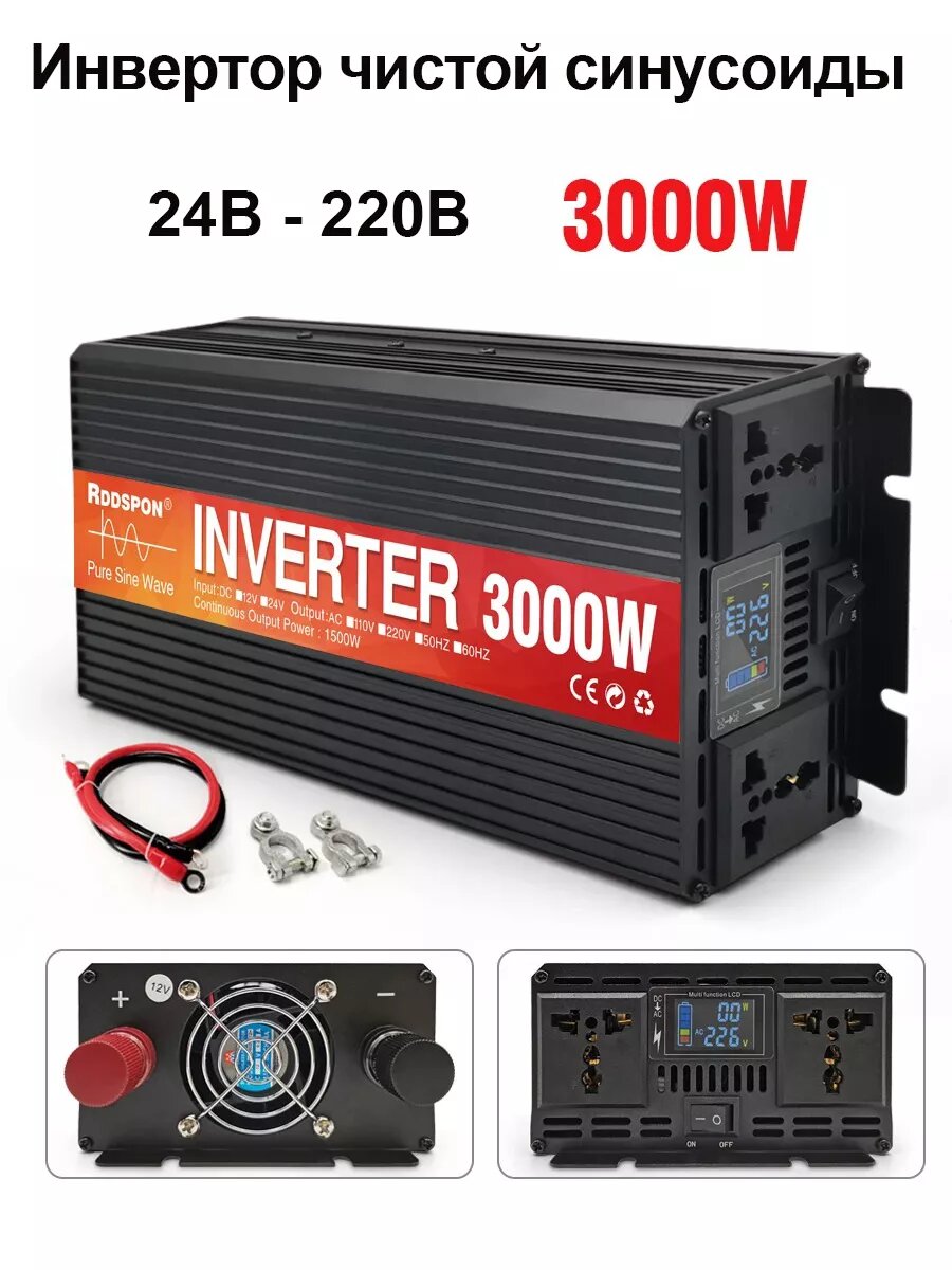 Купить 3000W 24V - 220V Чистый синусоидальный инвертор, RDDSPON для автомобилей и дома, двойной выход, защита от перегрузки