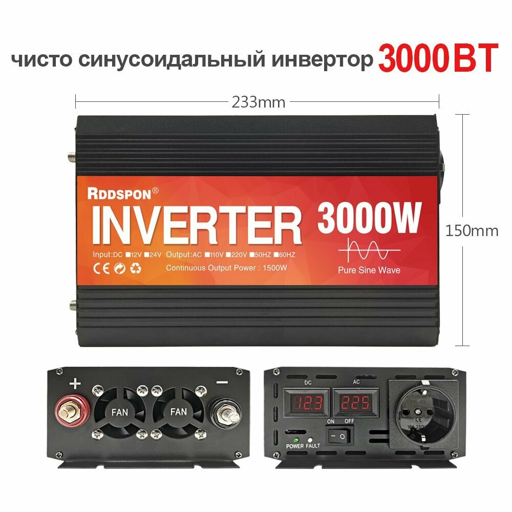 4000W Инвертор 24 - 220v, RDDSPON Автомобильный чистый синусоидальный инвертор, энергосберегающий и экологически чистый интересное: