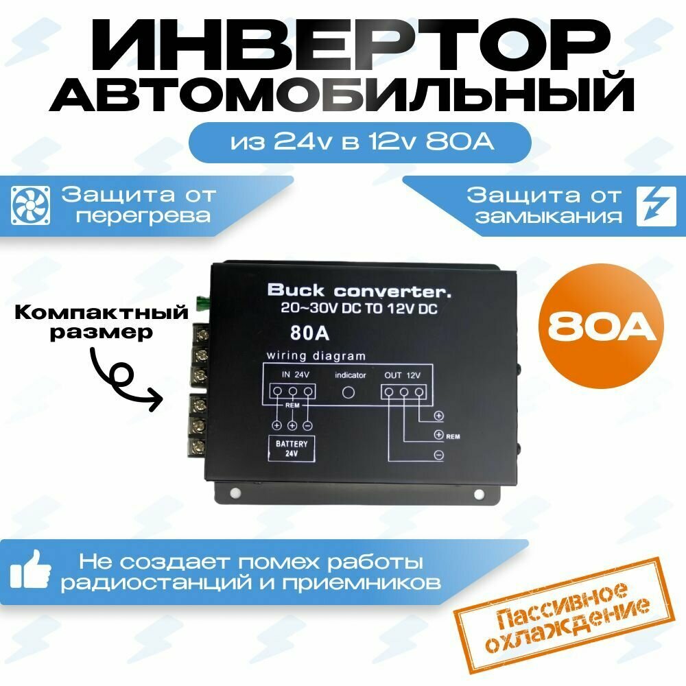 Преобразователь напряжения (инвертор) 24-12v 80А (960вт) понижающий интересное: