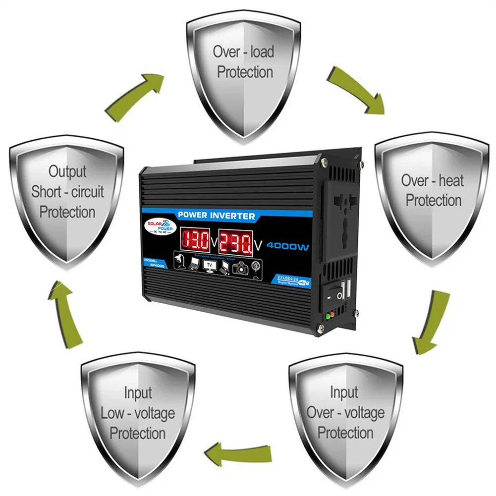 Купить Автомобильный инвертор мощности, двойной ЖК-цифровой дисплей, автомобильное зарядное устройство, Black 12V - 220V