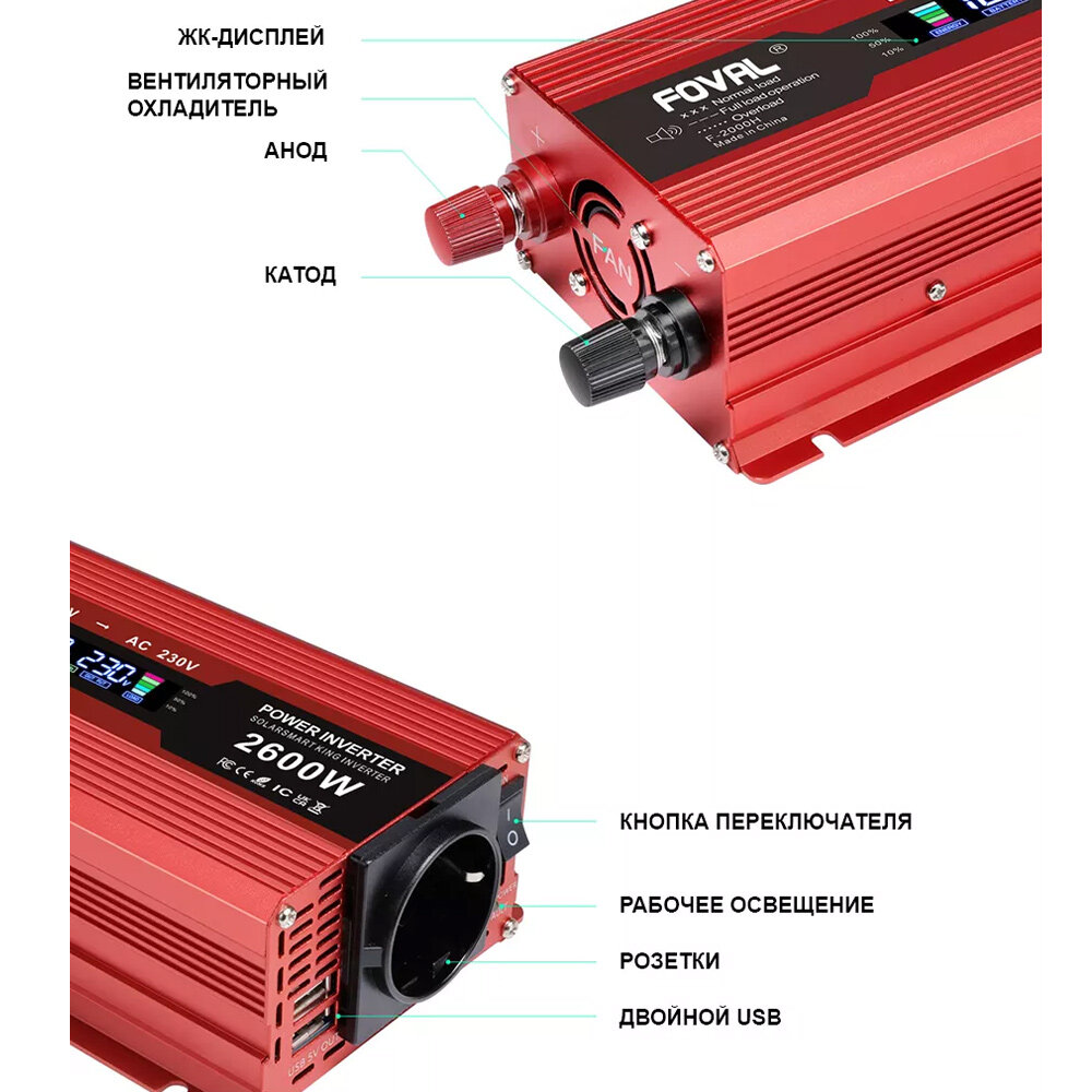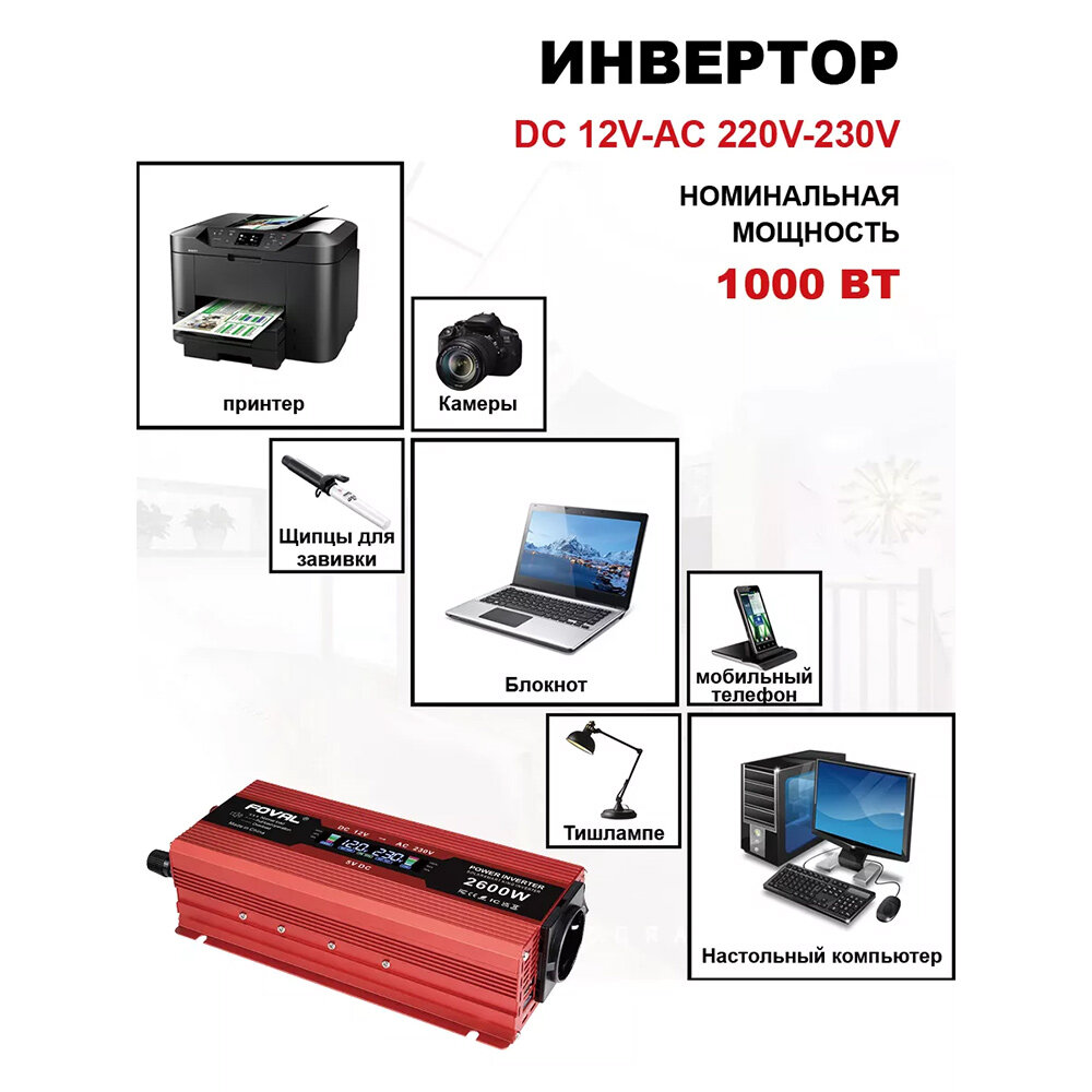 Ниже Вы можете прочитать отзывы на 2600 Вт 12В-220В Автомобильный инвертор, ознакомится с подробными характеристиками, посмотреть интересные обзоры и фотографии на 2600 Вт 12В-220В Автомобильный инвертор.