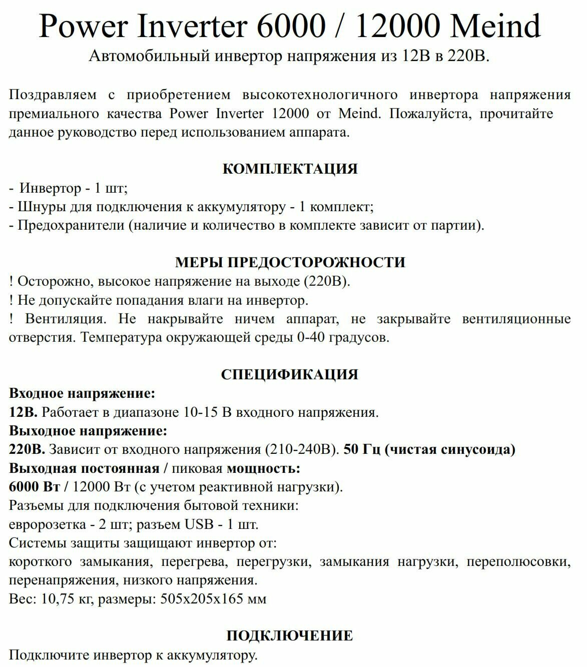 Автомобильный инвертор 6000 Вт 12 В в 220 В с чистой синусоидой, пиковая мощность 12000 Вт с разъемами для аккумулятора интересное: