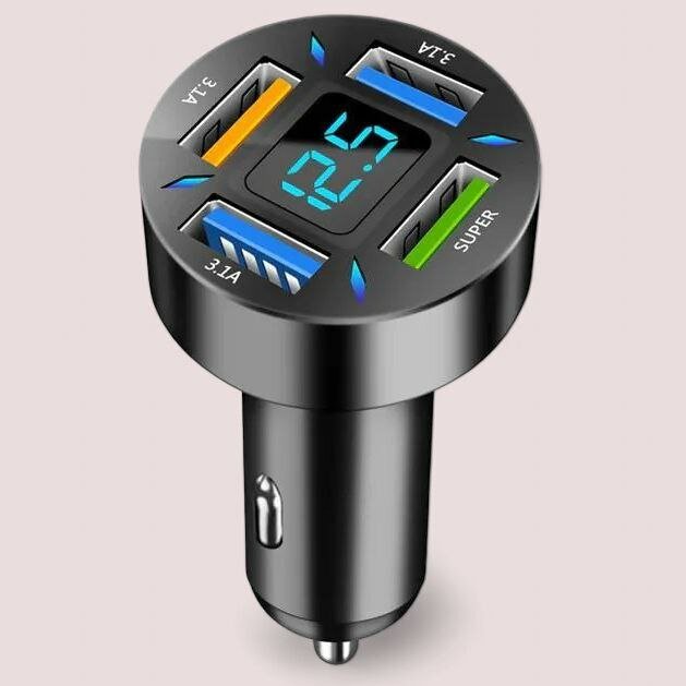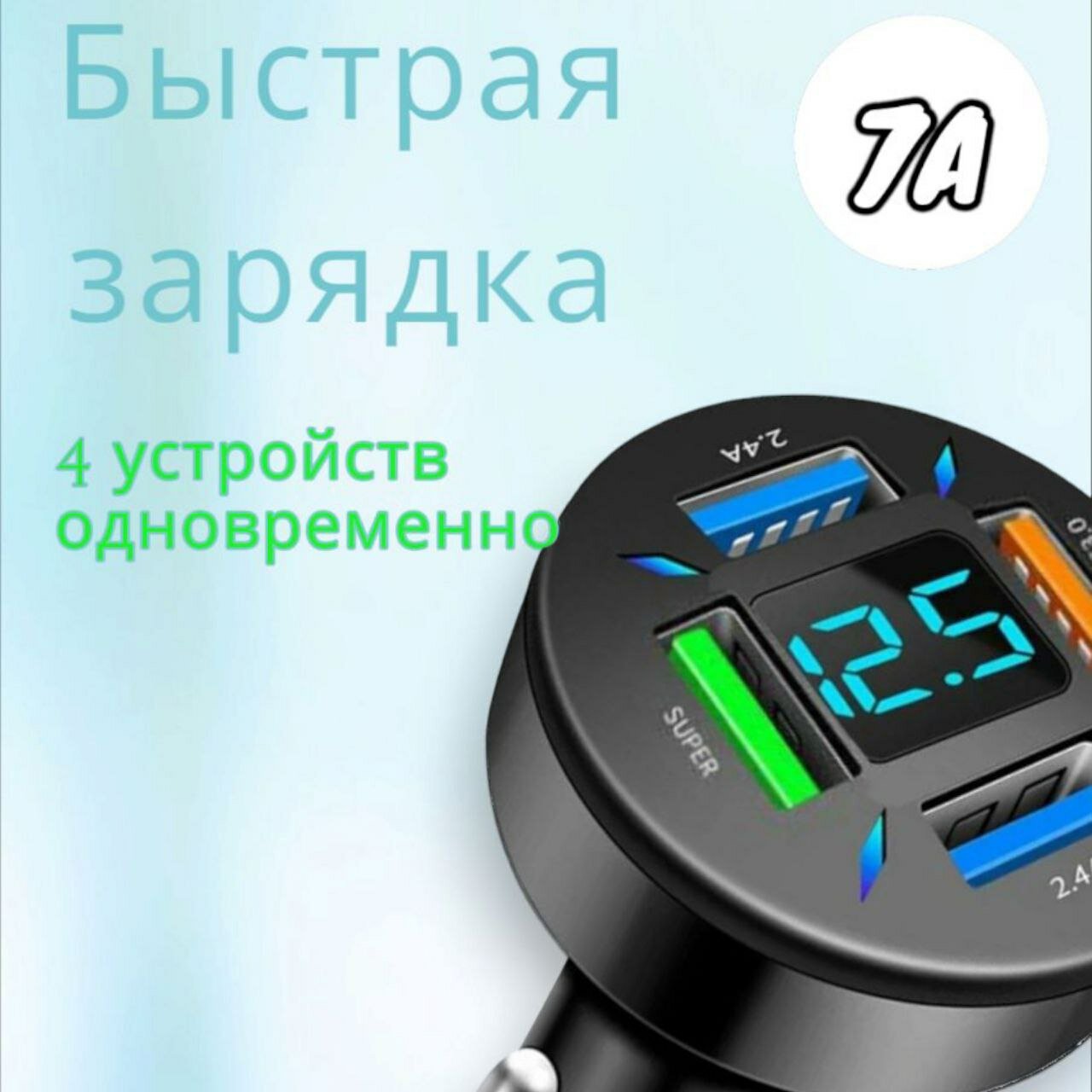 Автомобильное зарядное устройство, адаптер для быстрой зарядки прикуривателя, 4-портовый USB A, круглый интересное: