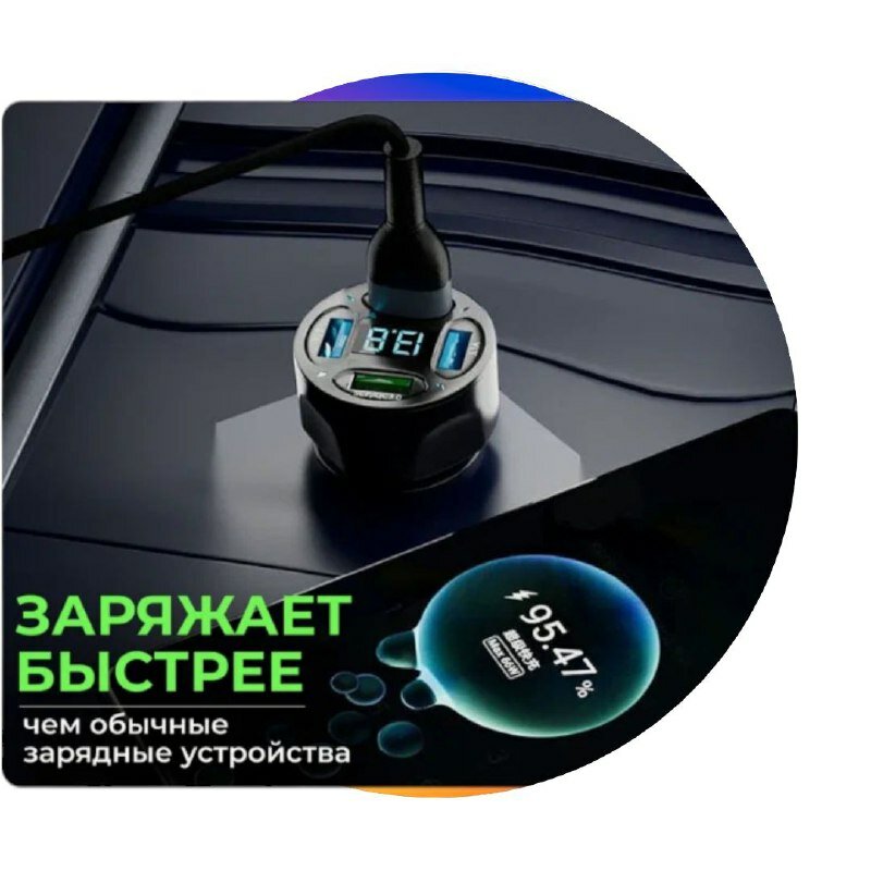 Автомобильное зарядное устройство, 66W, 4 порта, с вольтметром