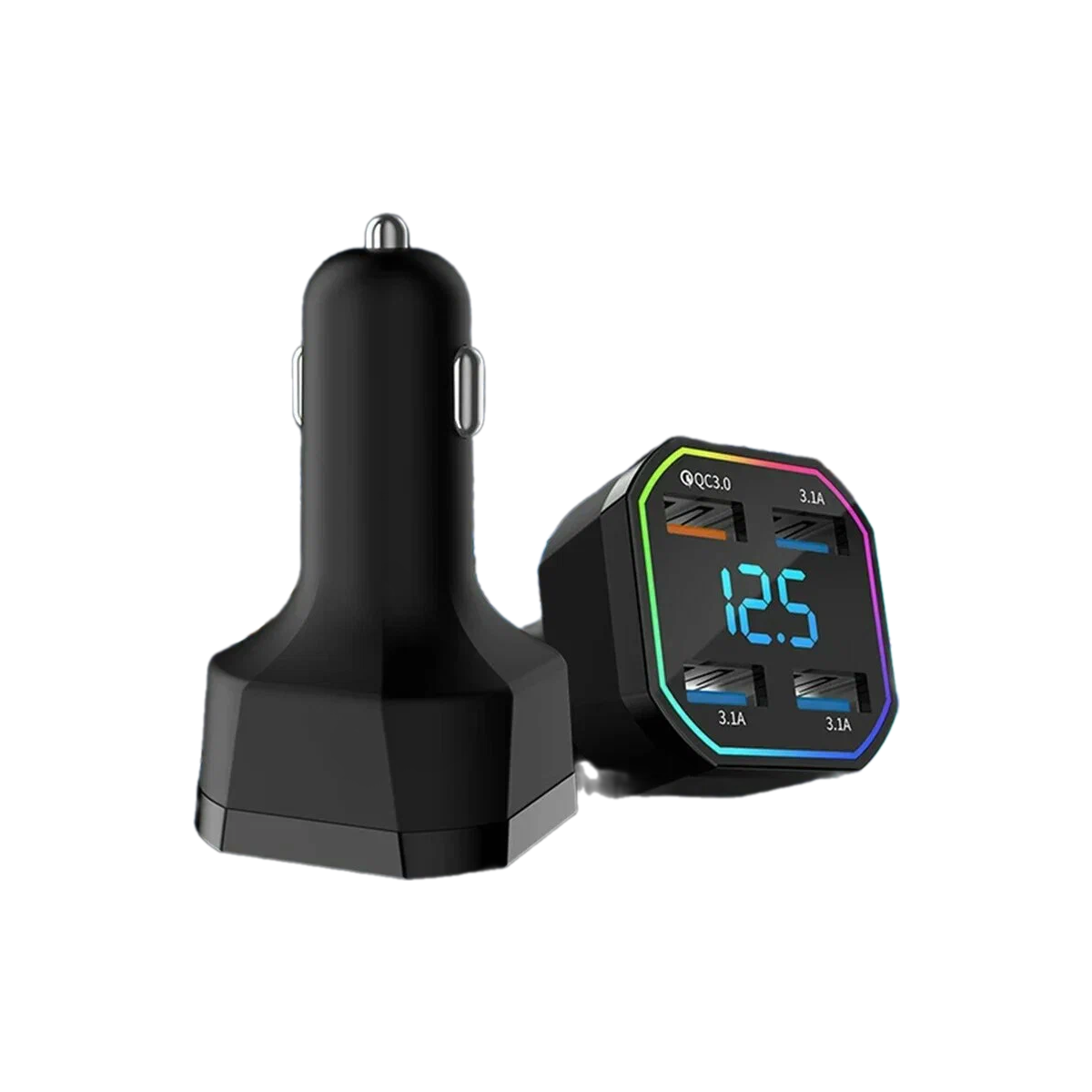 Купить Автомобильное зарядное устройство, 66W, 4 порта, с вольтметром