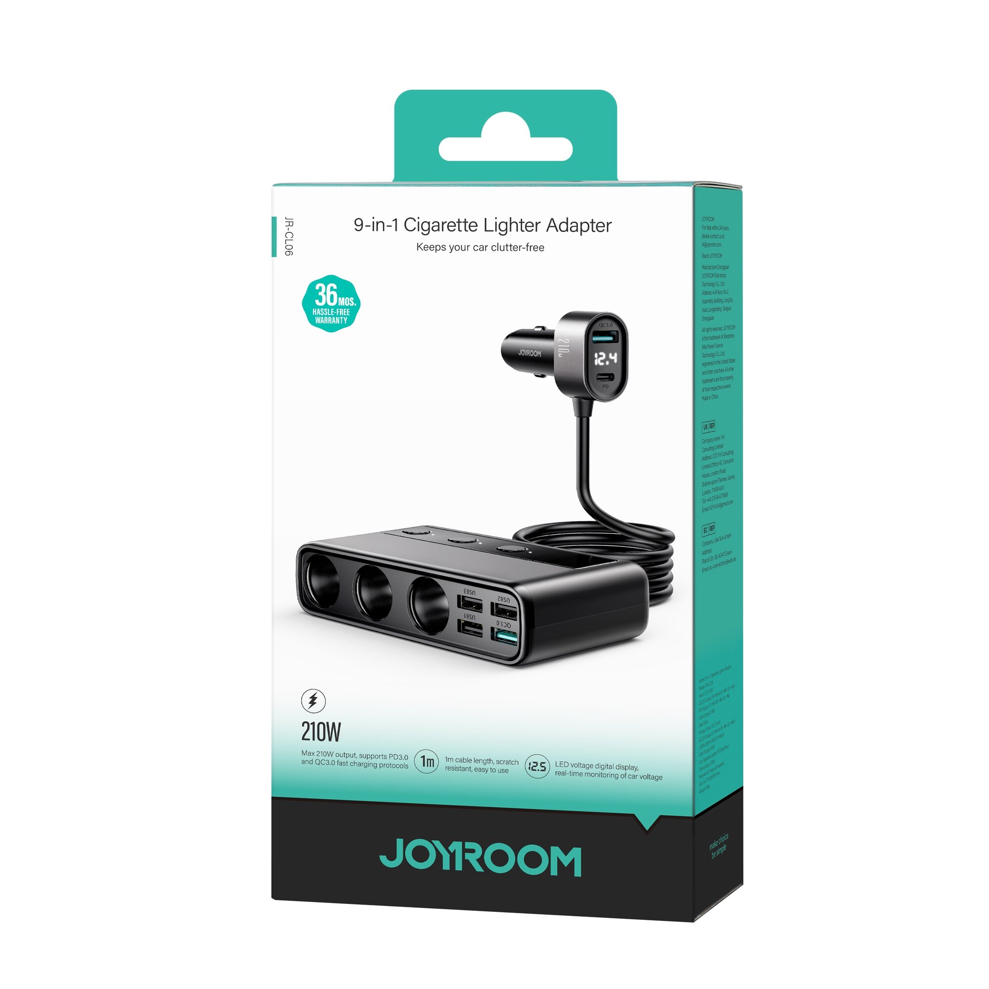 Купить 9 in 1 Автомобильный адаптер Joyroom, 210W, быстрая зарядка QC3.0 + PD, LED-дисплей, 3 прикуривателя + 6 USB