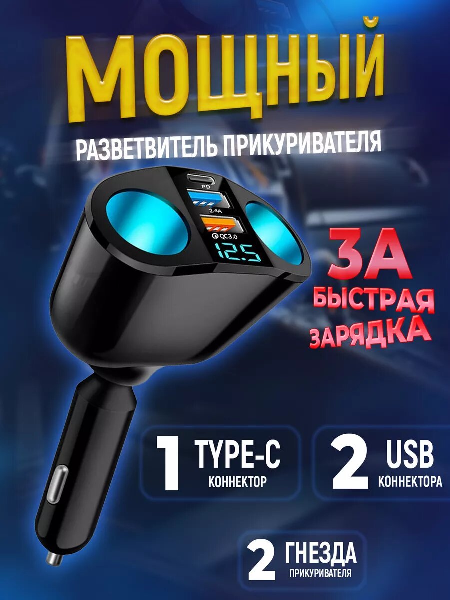 Разветвитель прикуривателя в авто USB Type-C быстрая зарядка интересное: