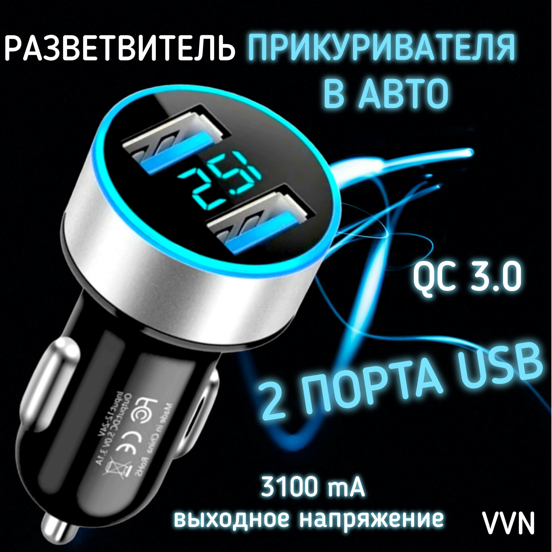 Разветвитель прикуриватеоя в авто зарядное устройство 2 порта USB QС 3.1 серебристый интересное: