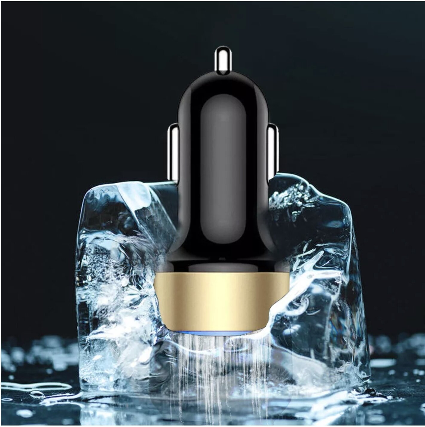 Разветвитель прикуриватеоя в авто зарядное устройство 2 порта USB QС 3.1 золотистый
