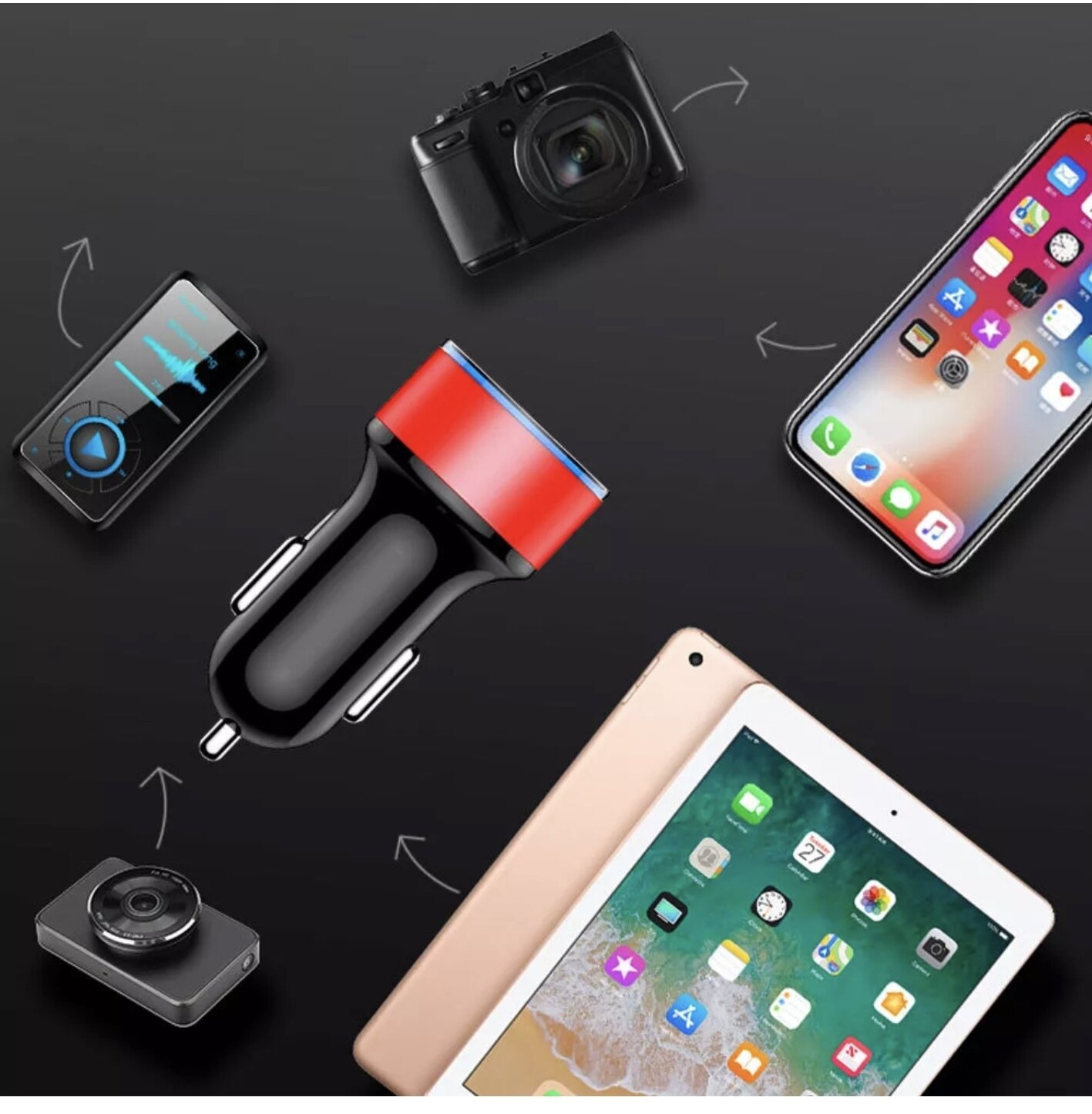 Разветвитель прикуриватеоя в авто зарядное устройство 2 порта USB QС 3.1 красный