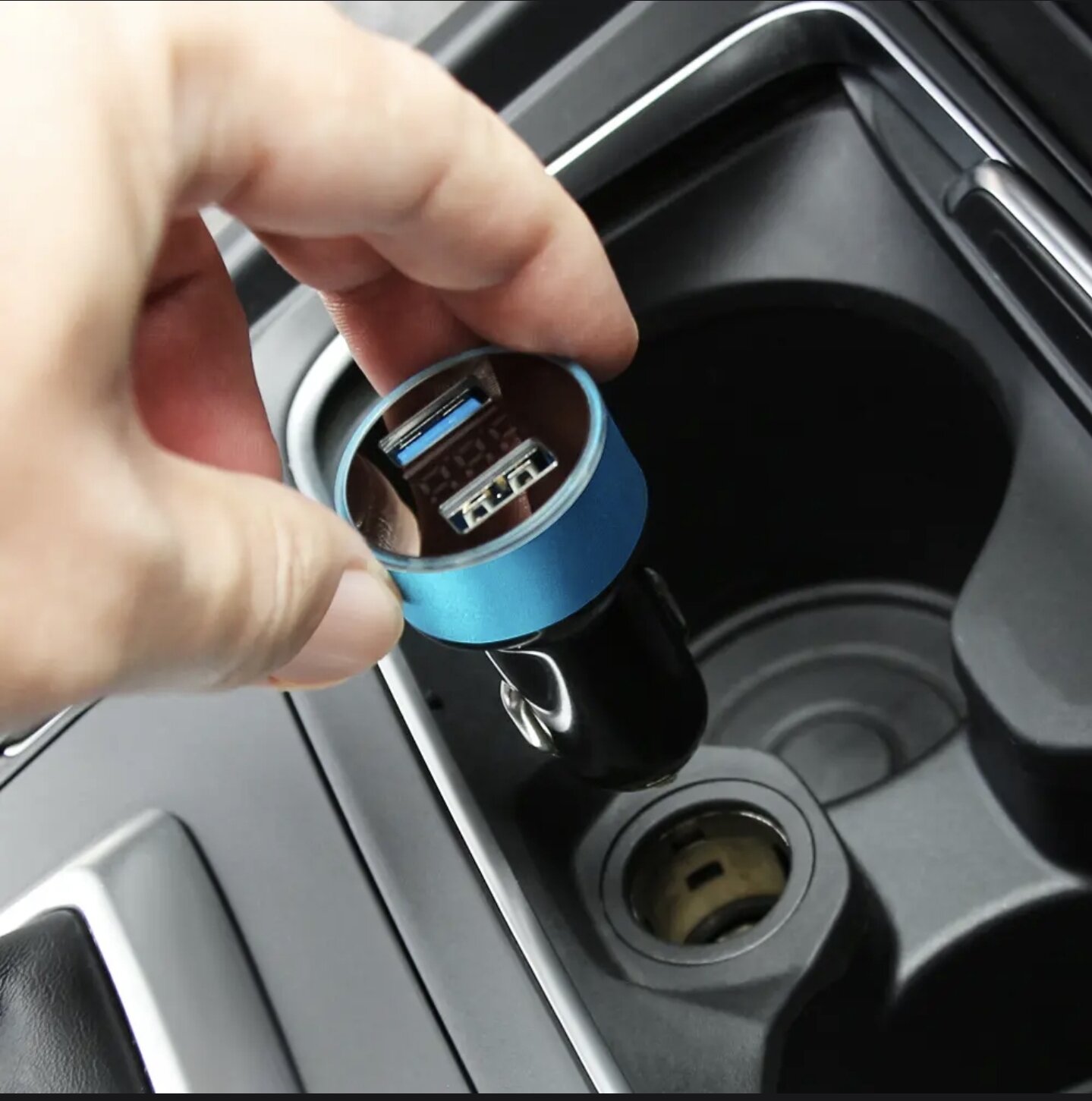 Купить Разветвитель прикуриватеоя в авто зарядное устройство 2 порта USB QС 3.1 голубой