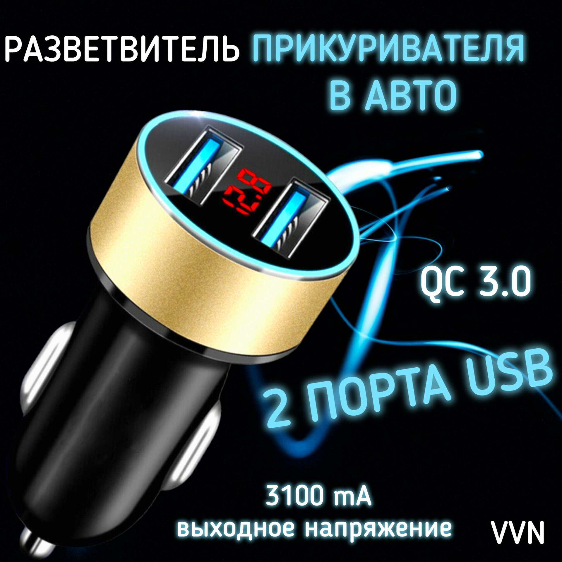 Разветвитель прикуриватеоя в авто зарядное устройство 2 порта USB QС 3.1 золотистый интересное: