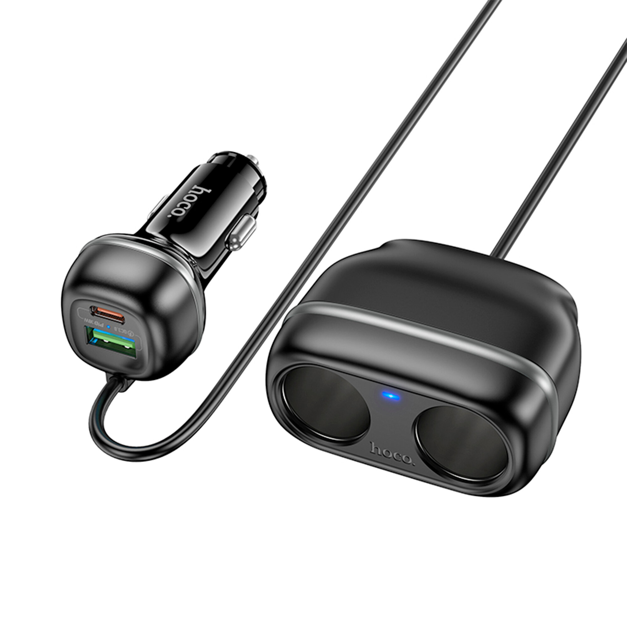 Купить Разветвитель прикуривателя на 1 USB QC3.0 18W + 1 PD 30W + 2 прикуривателя на проводе Z59, черный