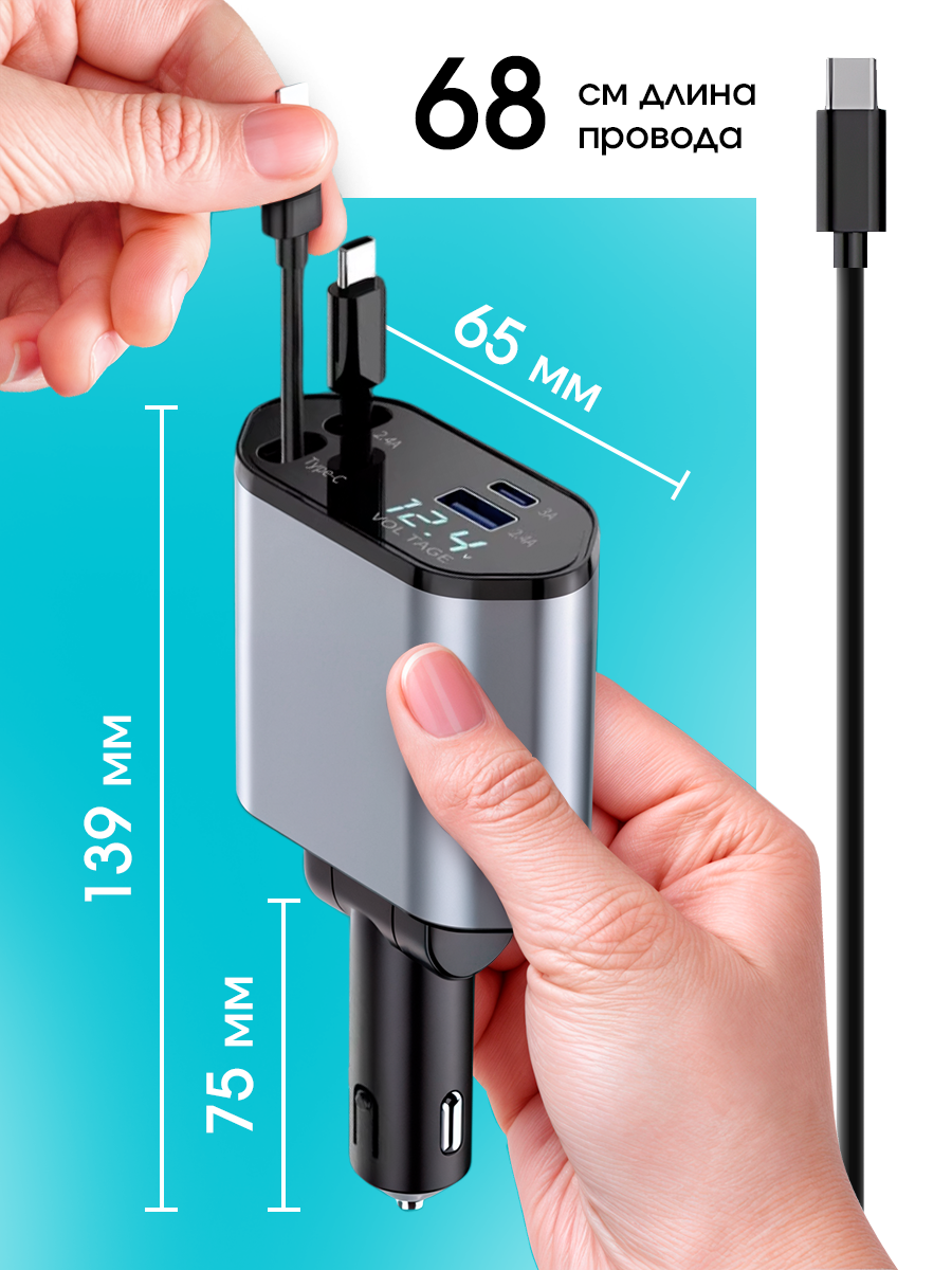 Разветвитель usb автомобильный в прикуриватель авто, зарядное устройство в машину, быстрая зарядка