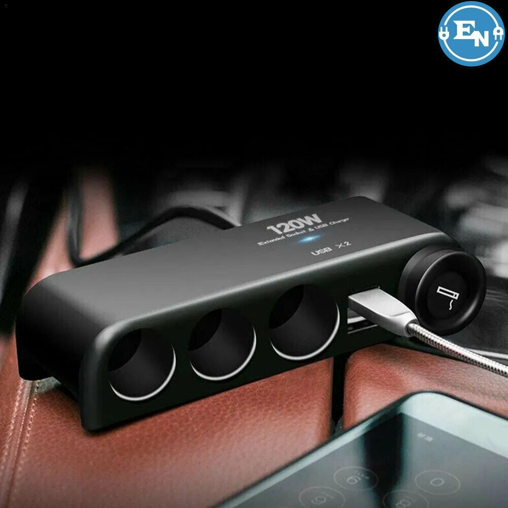 Разветвитель прикуривателя с функцией отключения гнезд / Автомобильный зарядник-адаптер c 2 USB-портами / Зарядка в прикуриватель