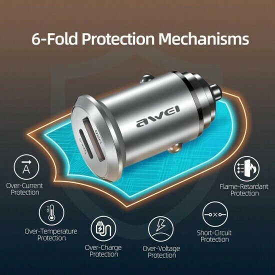 Автомобильный адаптер AWEI C-708, QC3, 012410 интересное: