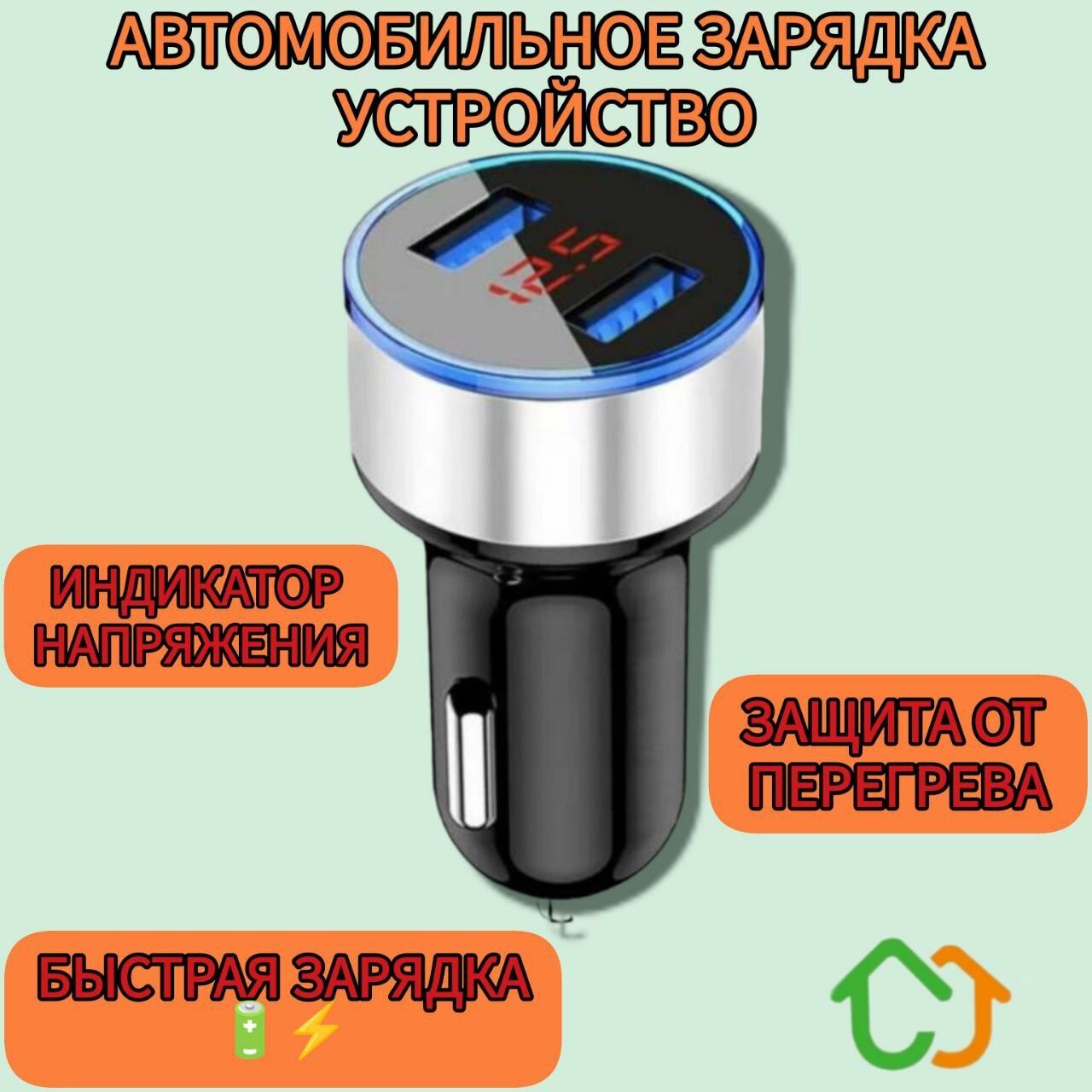 Разветвитель прикуривателя для авто KICT/ 2 гнезда USB/ Быстрая зарядка, серебрянный интересное: