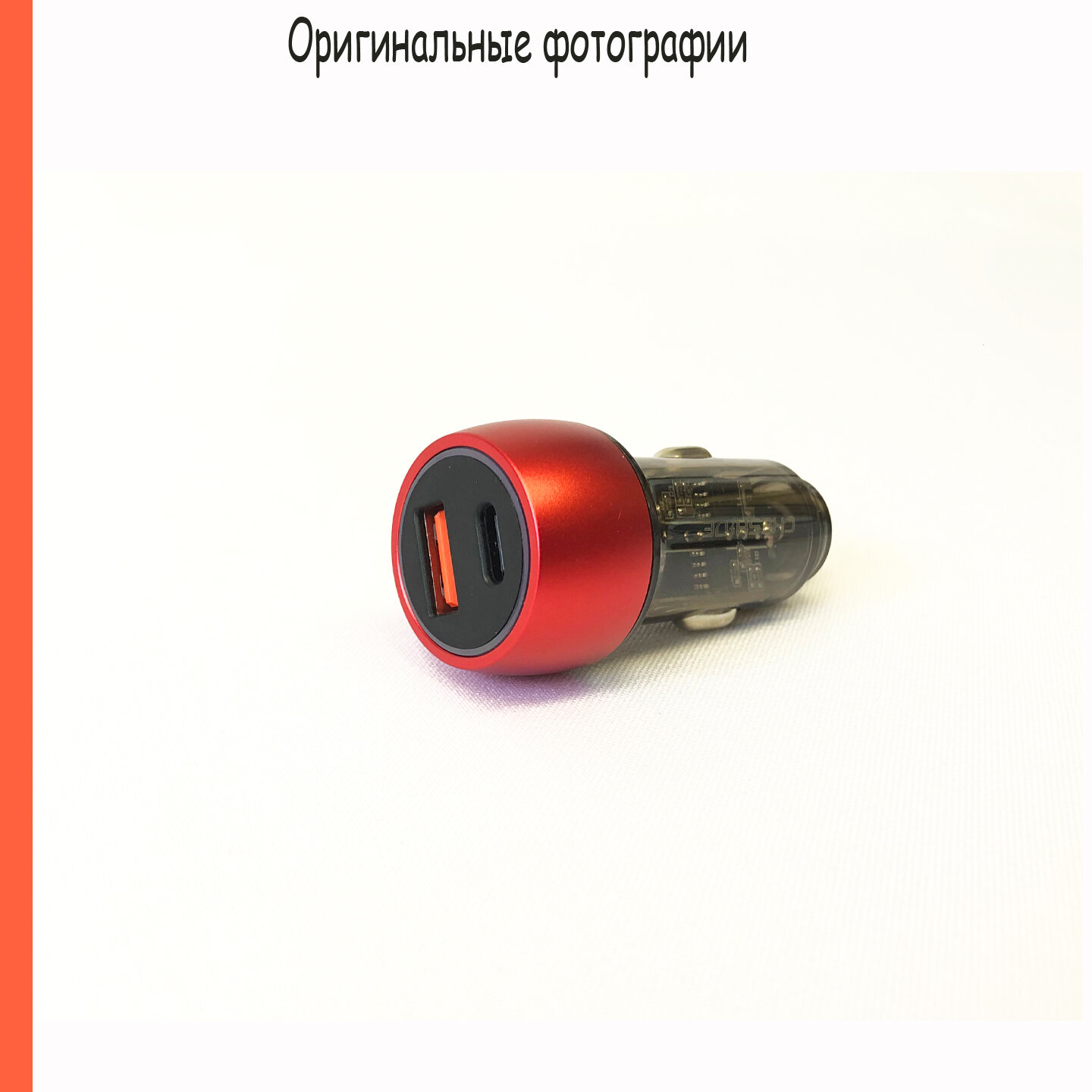 Купить Разветвитель прикуривателя 12-24вольт PD7773 USB+Type-C автомобильная зарядка, шнур 3в1 в комплекте, красный