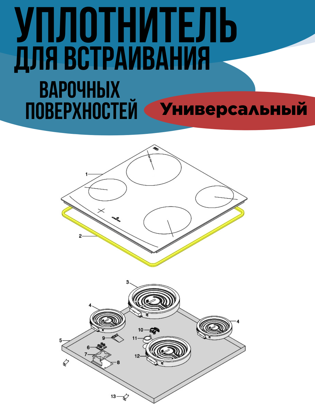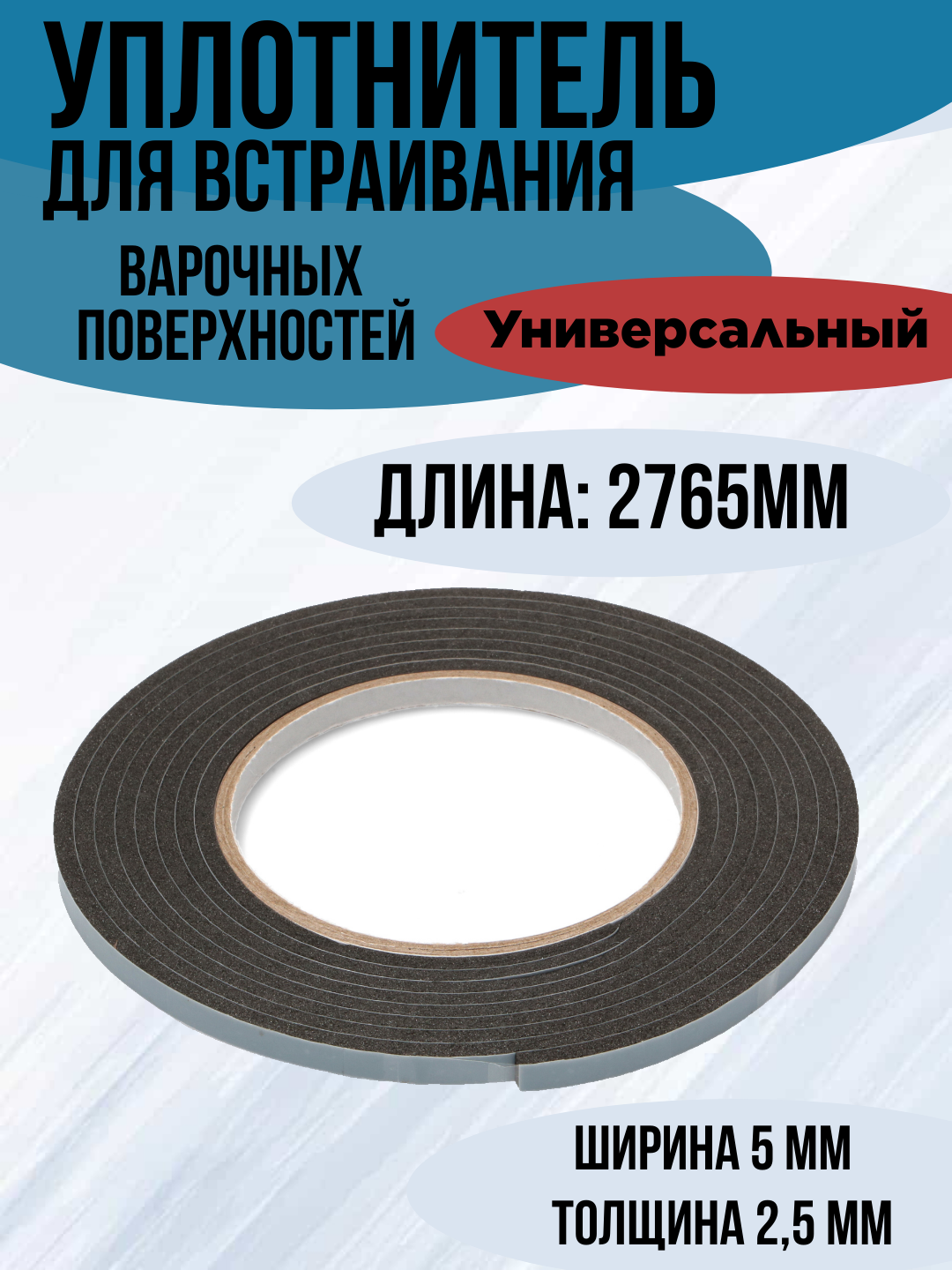 Уплотнитель для встраивания плит (варочных поверхностей), прокладка универсальная 2765мм x 5 мм x 2,5 мм, 481246688969 интересное: