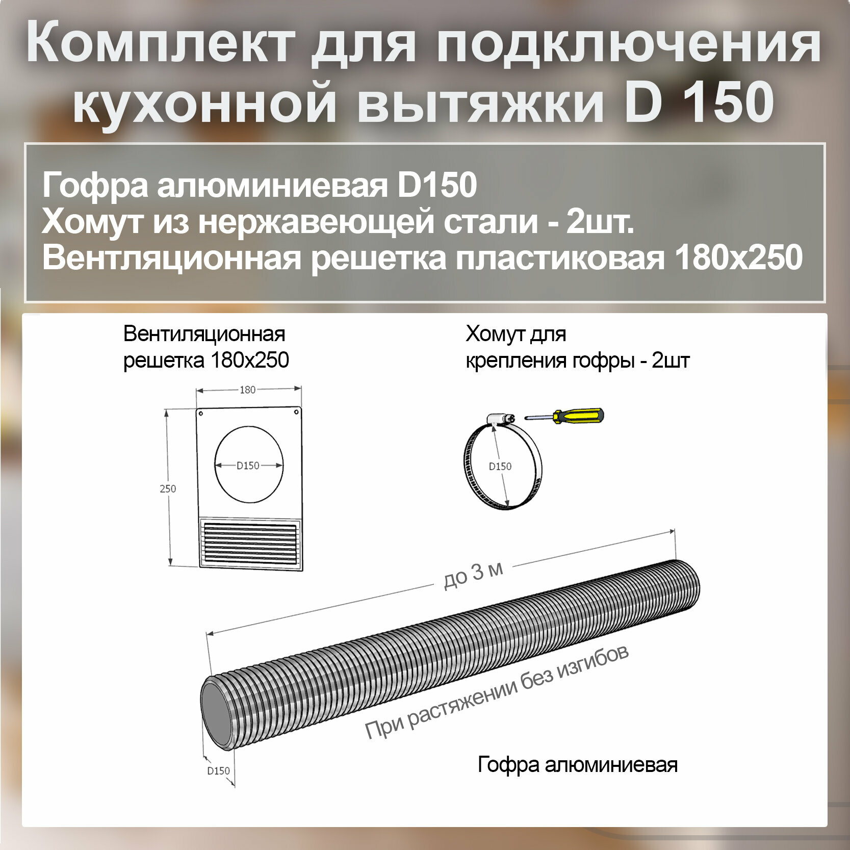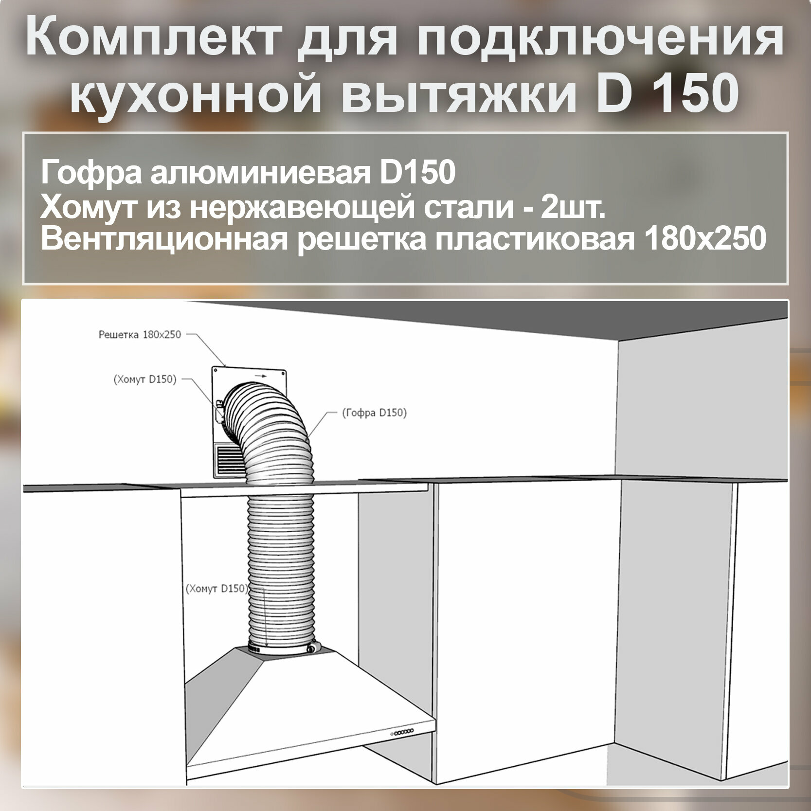 (Код: 150-Р-Х) Grand&Germes Набор для подключения кухонной вытяжки D150 интересное: