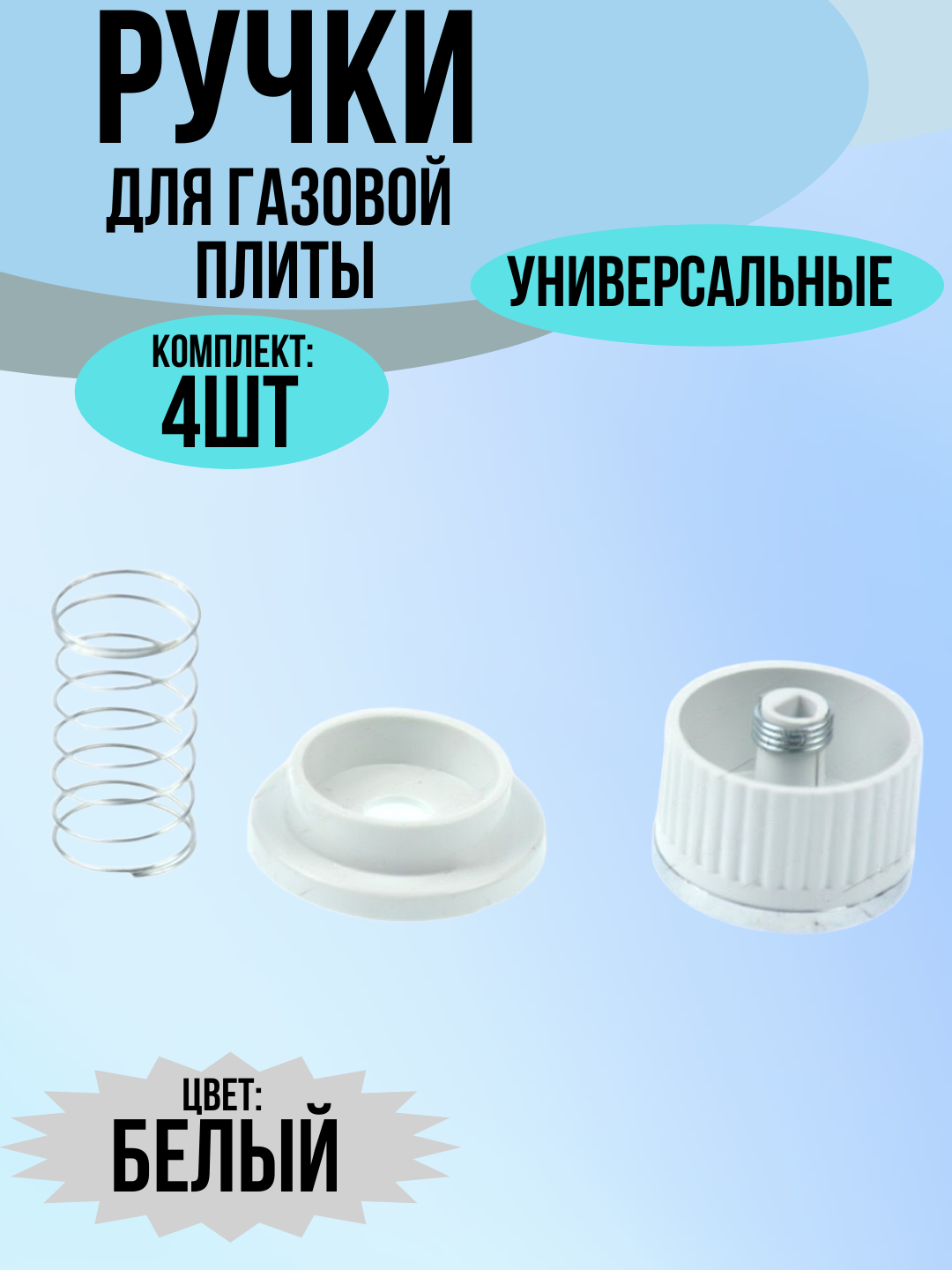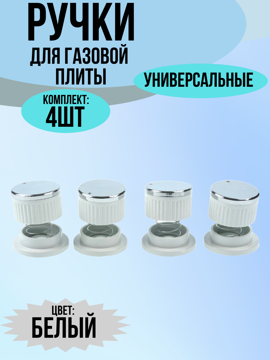 Купить Ручки для газовых плит переключатели, белые, 4 штуки в комплекте