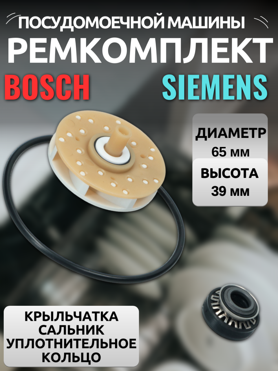 Ремкомплект насоса 65мм/39мм для ПММ Bosch/Siemens/Neff (код: 165813) крыльчатка, сальник и уплотнительное кольцо интересное: