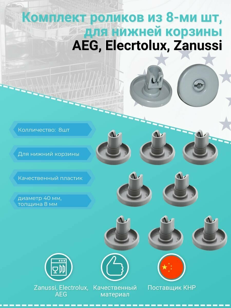 Комплект роликов из 8-ми шт, для нижней корзины AEG, Elecrtolux, Zanussi - DWB902ZN, 50286965004 интересное: