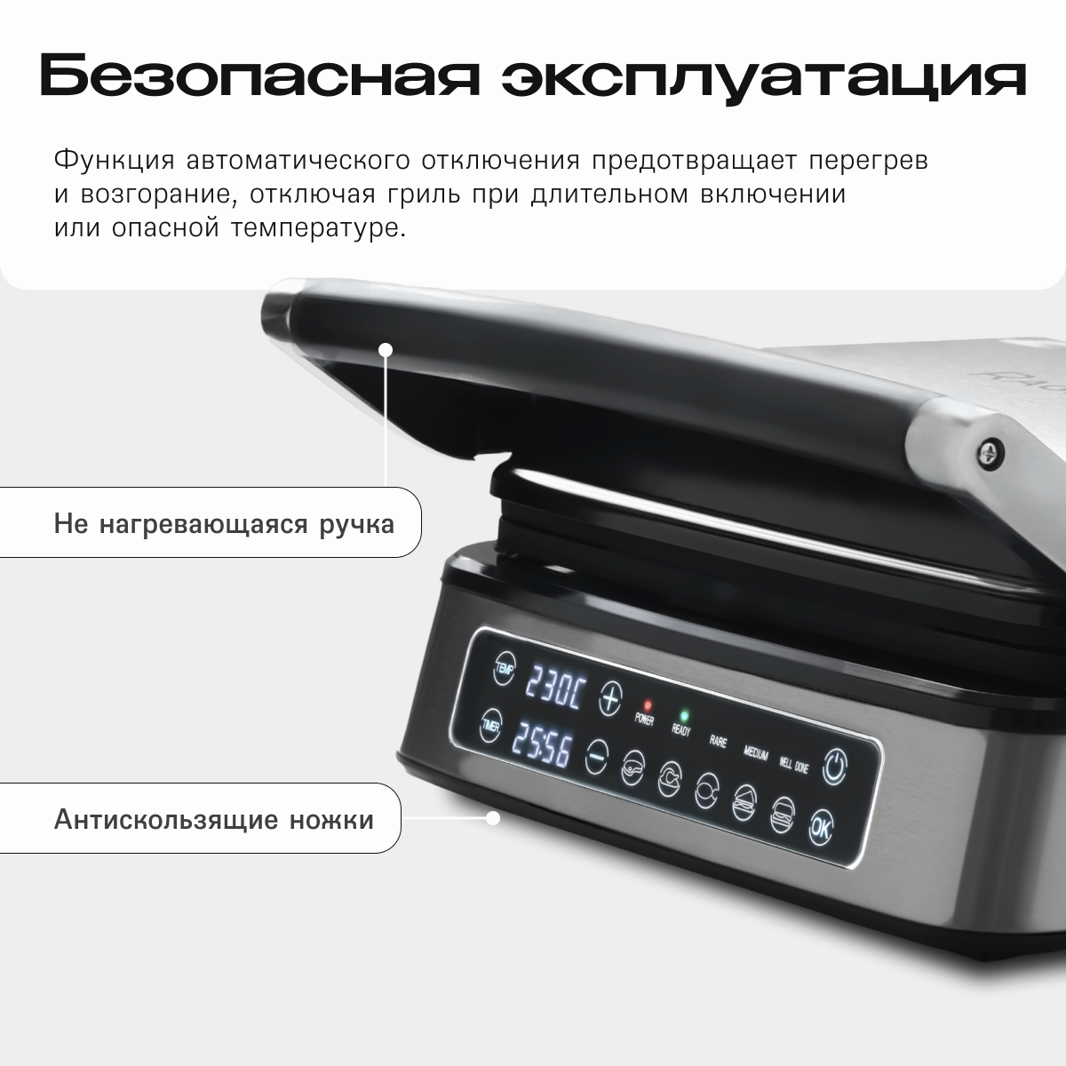 Электрический гриль с режимом барбекю, 5 программ, мощность 2000 Вт, серебристый интересное: