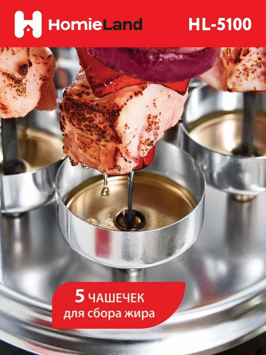 Электрошашлычница Homieland HL-5100, 1000 Вт, автоматическое вращение, 5 шампуров интересное: