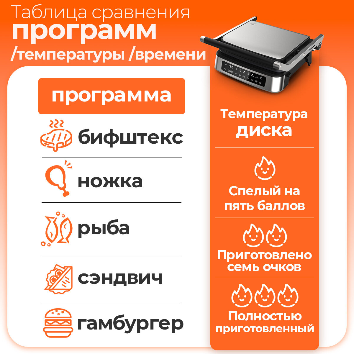 Электрогриль Karingbee, со съемными панелями/LED панелью управления/таймер/Два режима работы 180°/Антипригарное покрытие интересное:
