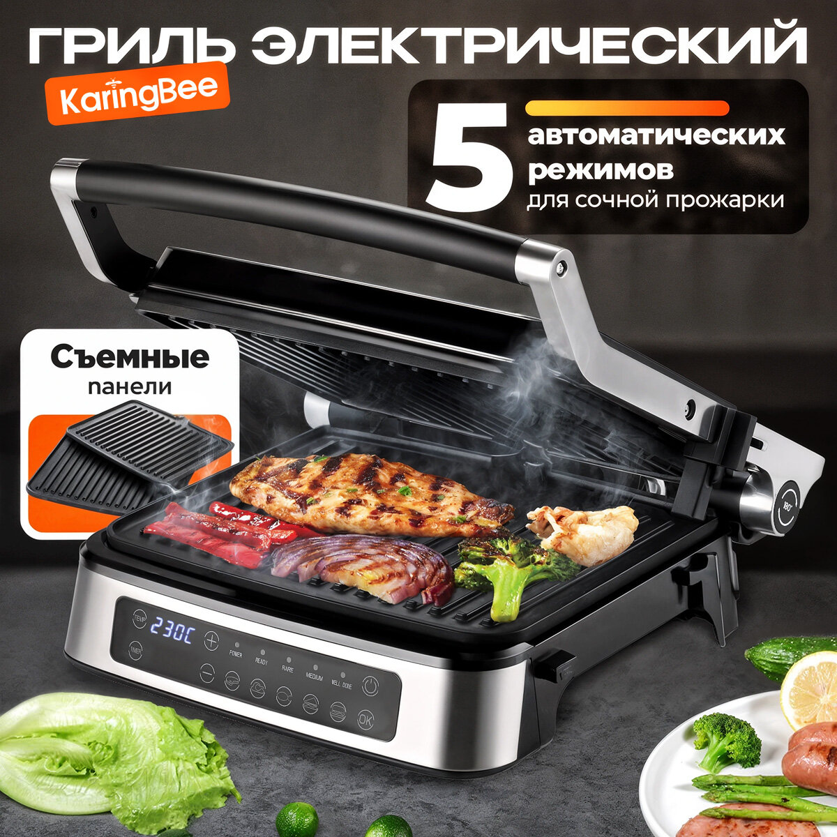 Гриль электрический со съемными панелями Karingbee SFW-C06 серебристый/черный интересное:
