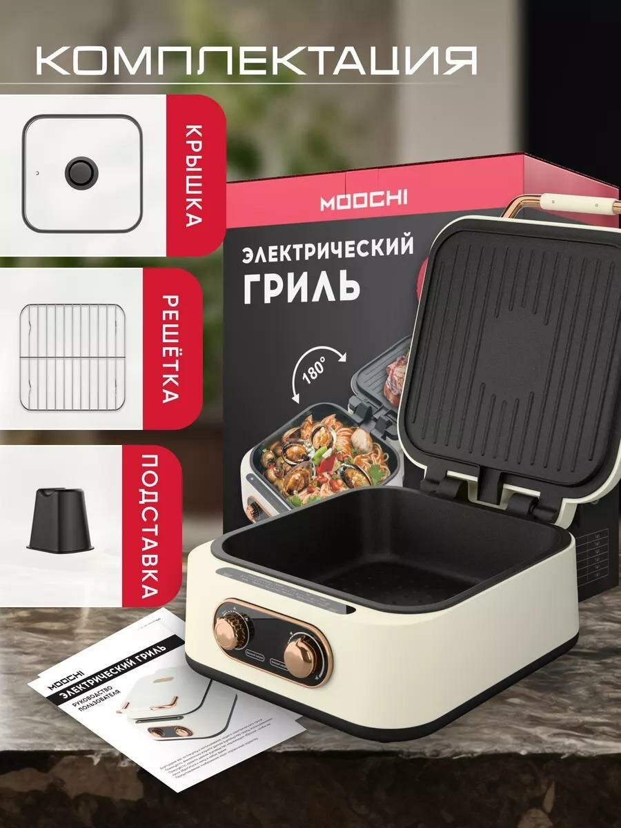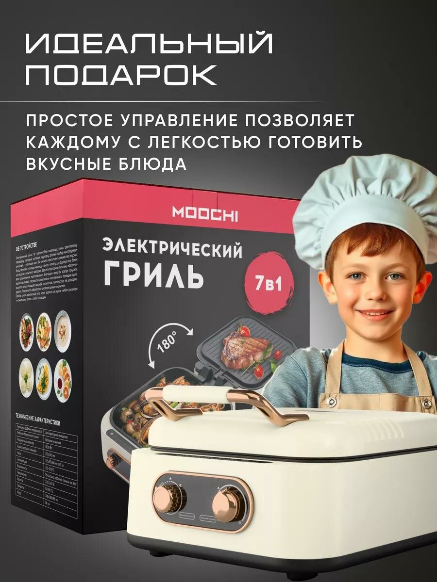 Гриль электрический 7в1, многофункциональный, с раздельной регулировкой антипригарных панелей и открытием 180°, 1800 Вт интересное: