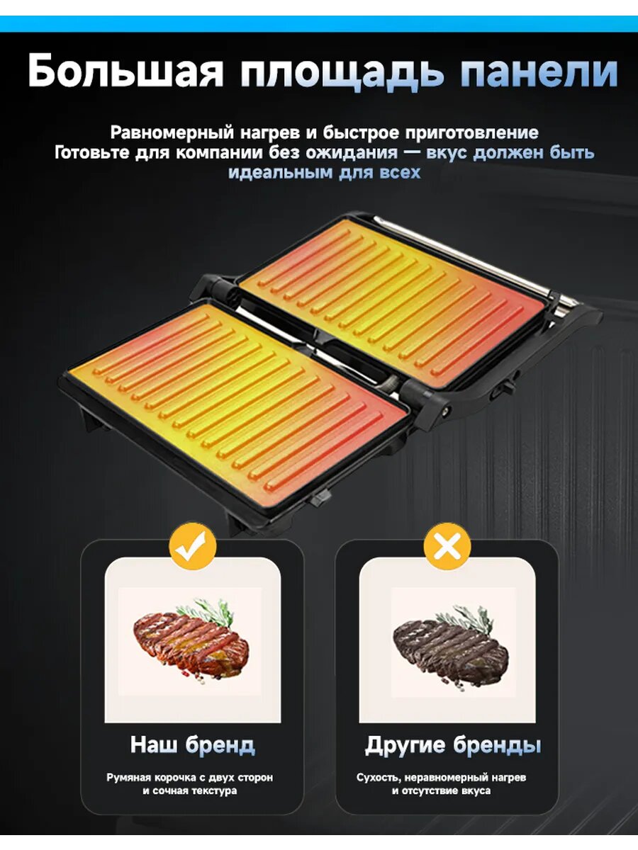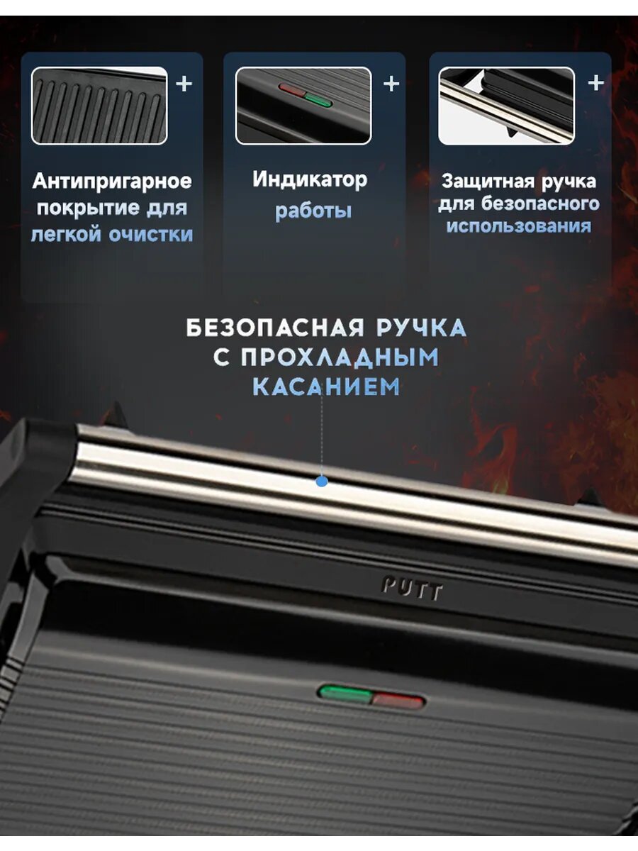 Электрогриль PUTT Black, антипригарное тефлоновое покрытие, защита от перегрева интересное: