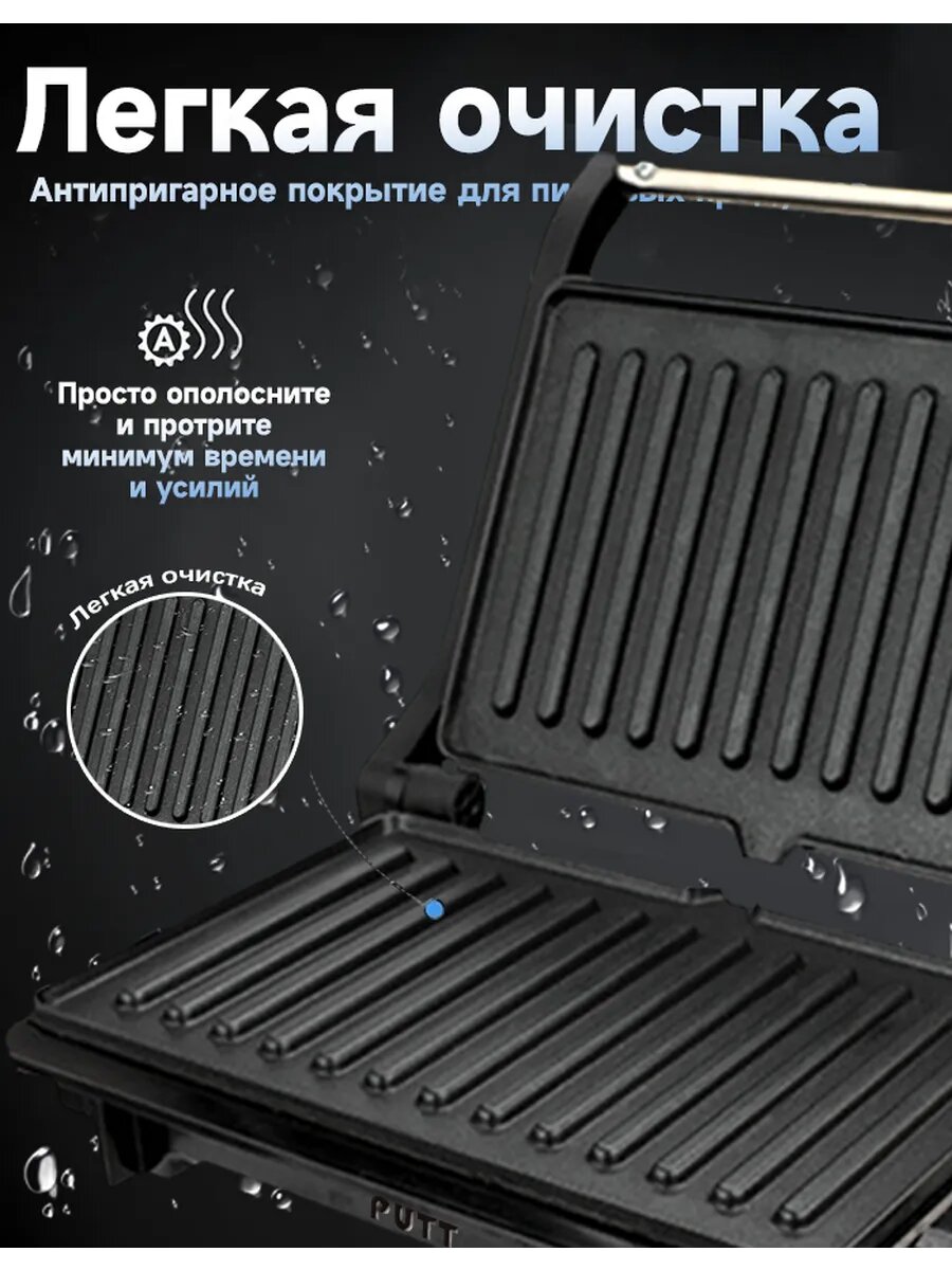 Купить Электрогриль PUTT Black, антипригарное тефлоновое покрытие, защита от перегрева