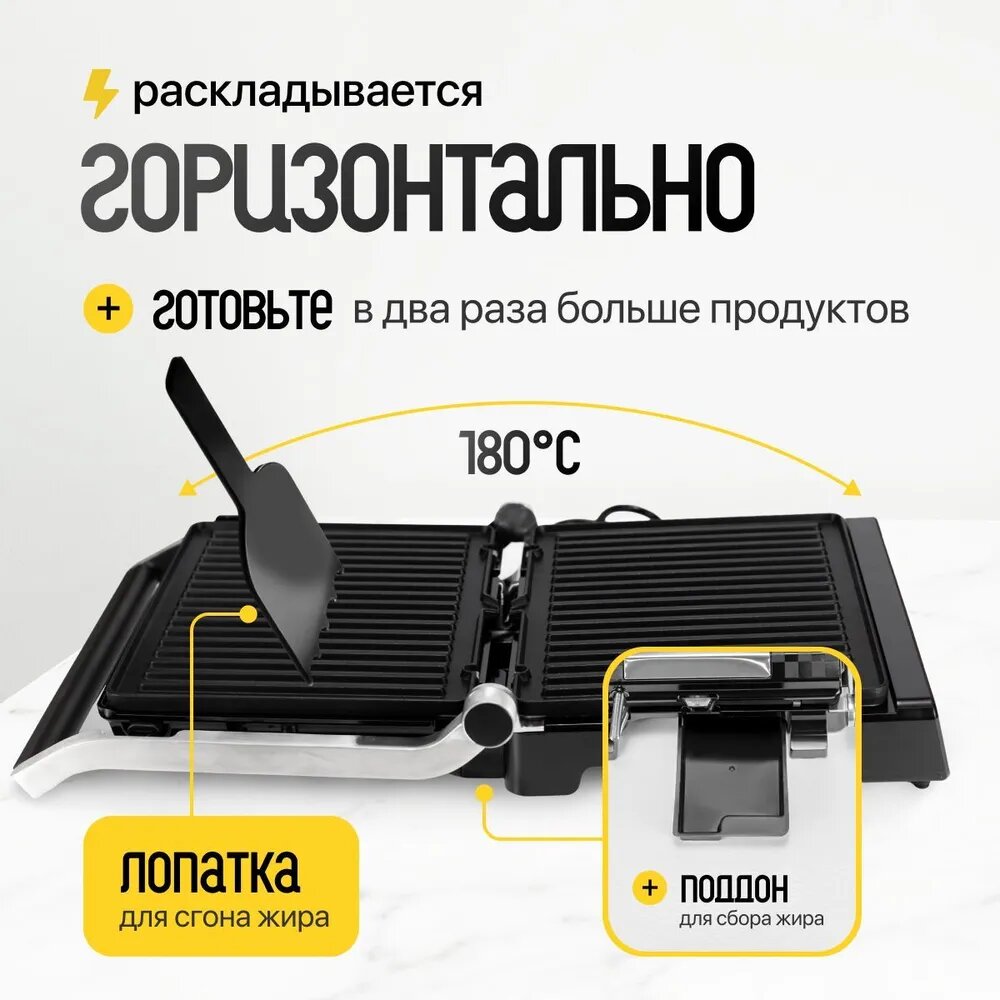 Гриль электрический со съемными панелями; 2000 Вт; электрогриль; металлический 10 программ интересное: