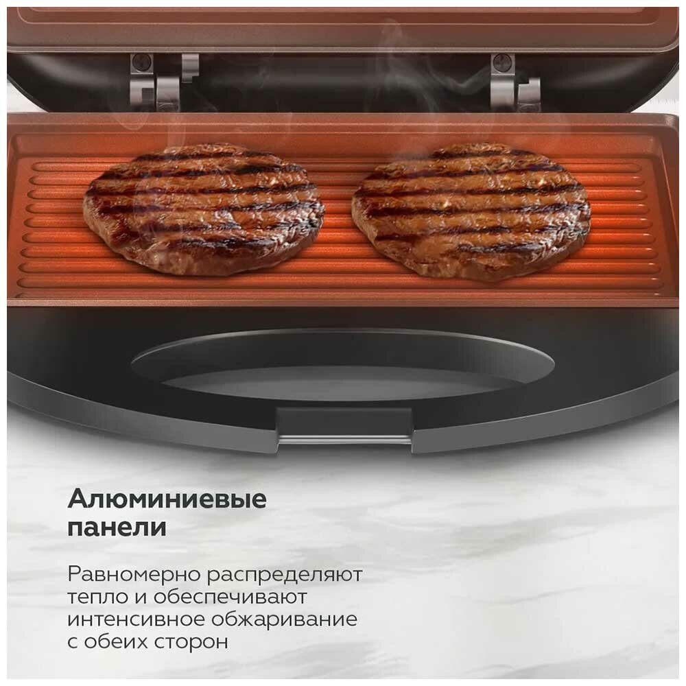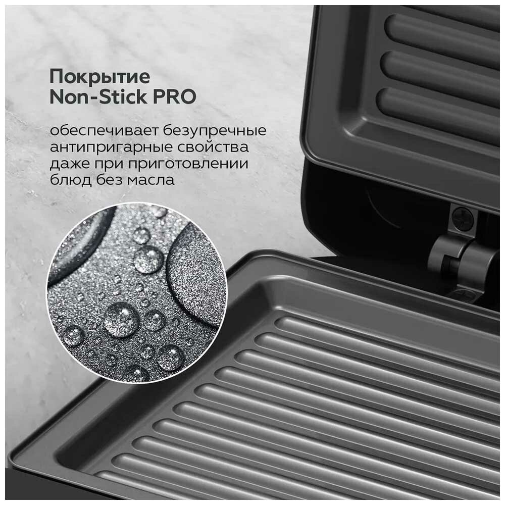 Гриль электрический BQ ST2002 Черный / Мощность 750 Вт / Антипригарное покрытие