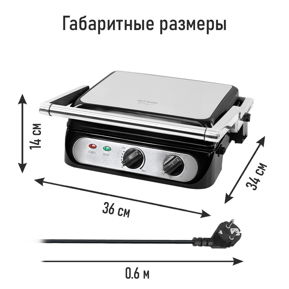 Гриль электрогриль STINGRAY ST-SM1217A съемные панели барбекю черный/сталь интересное: