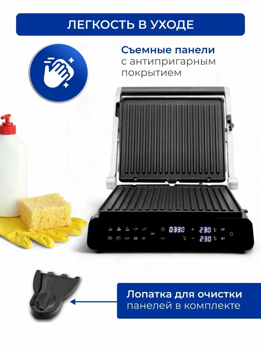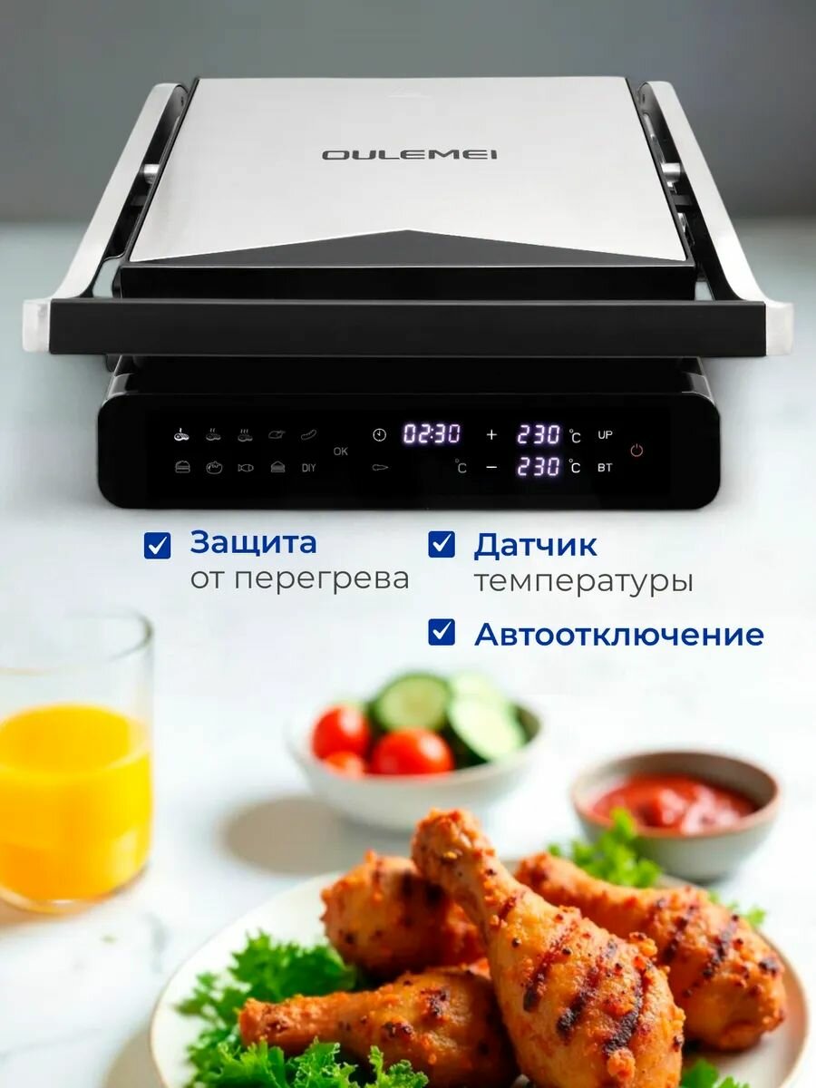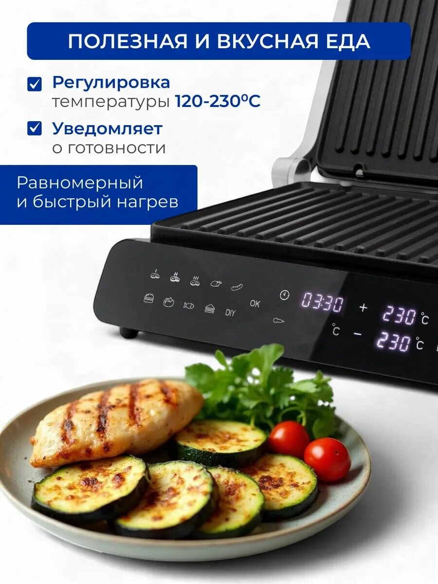 Сенсорный Электрический гриль 10 программ мощность 2000вт ручной режим интересное: