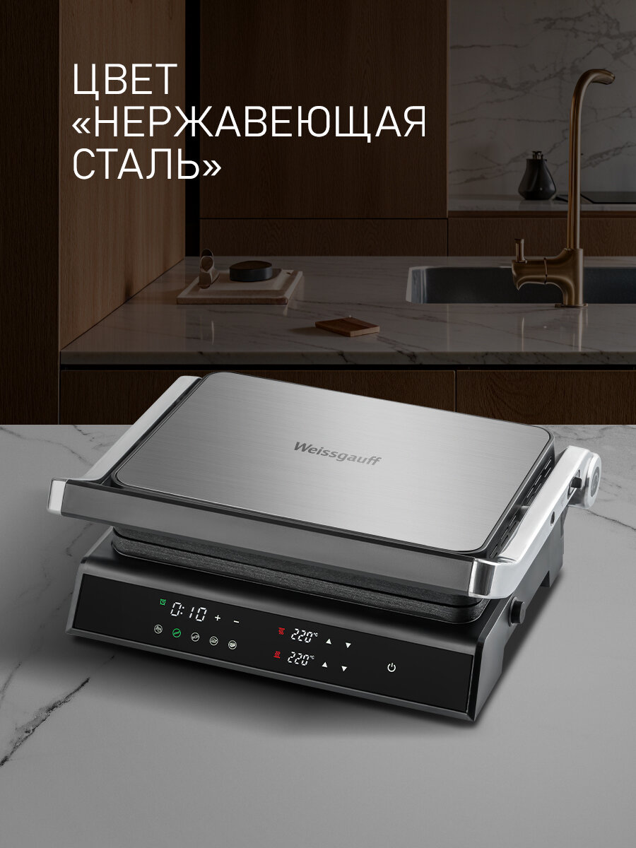 Купить Гриль электрический Weissgauff WCG 150 X Digital Inox, таймер с автоотключением