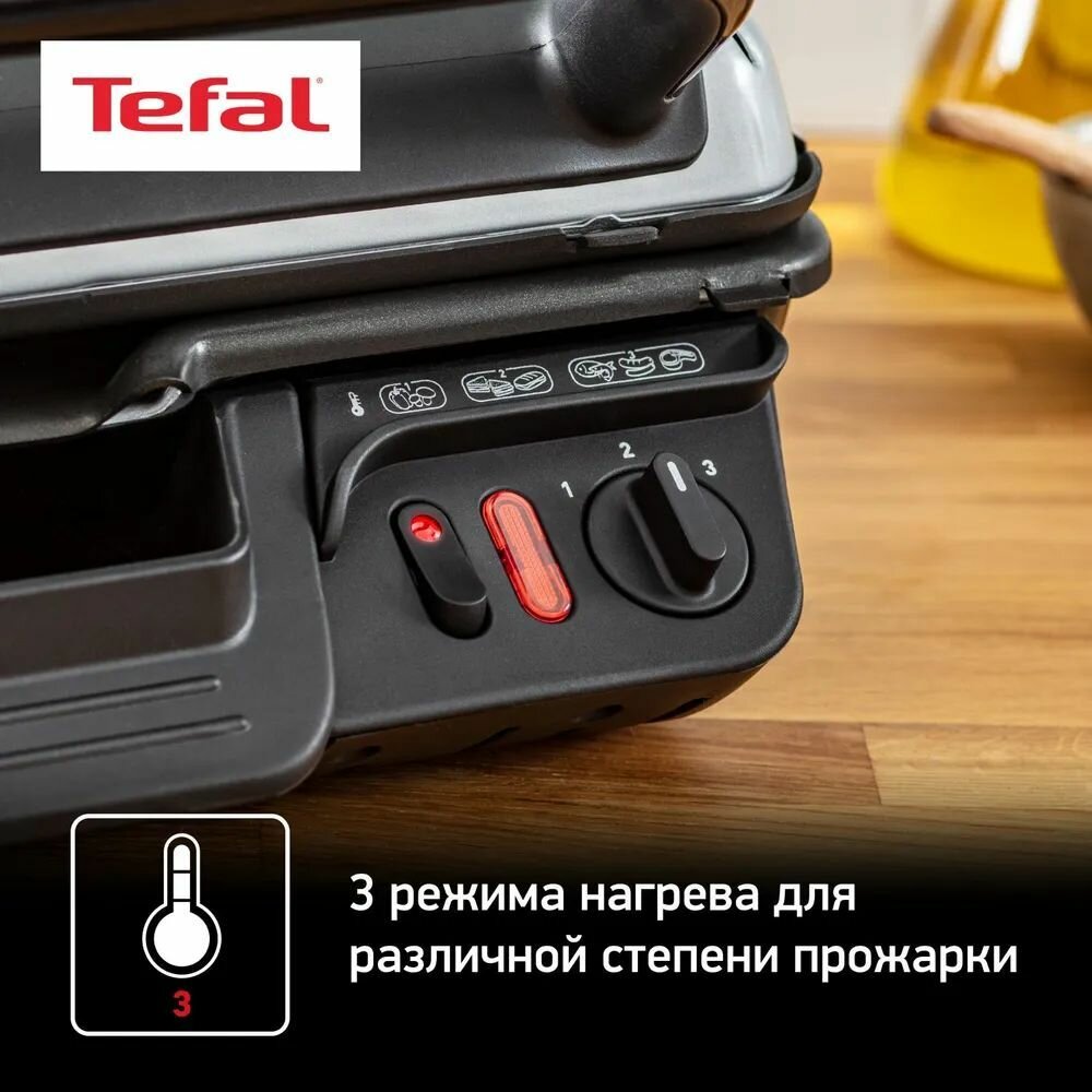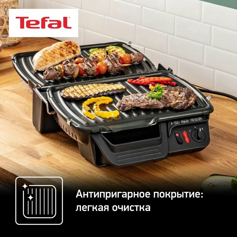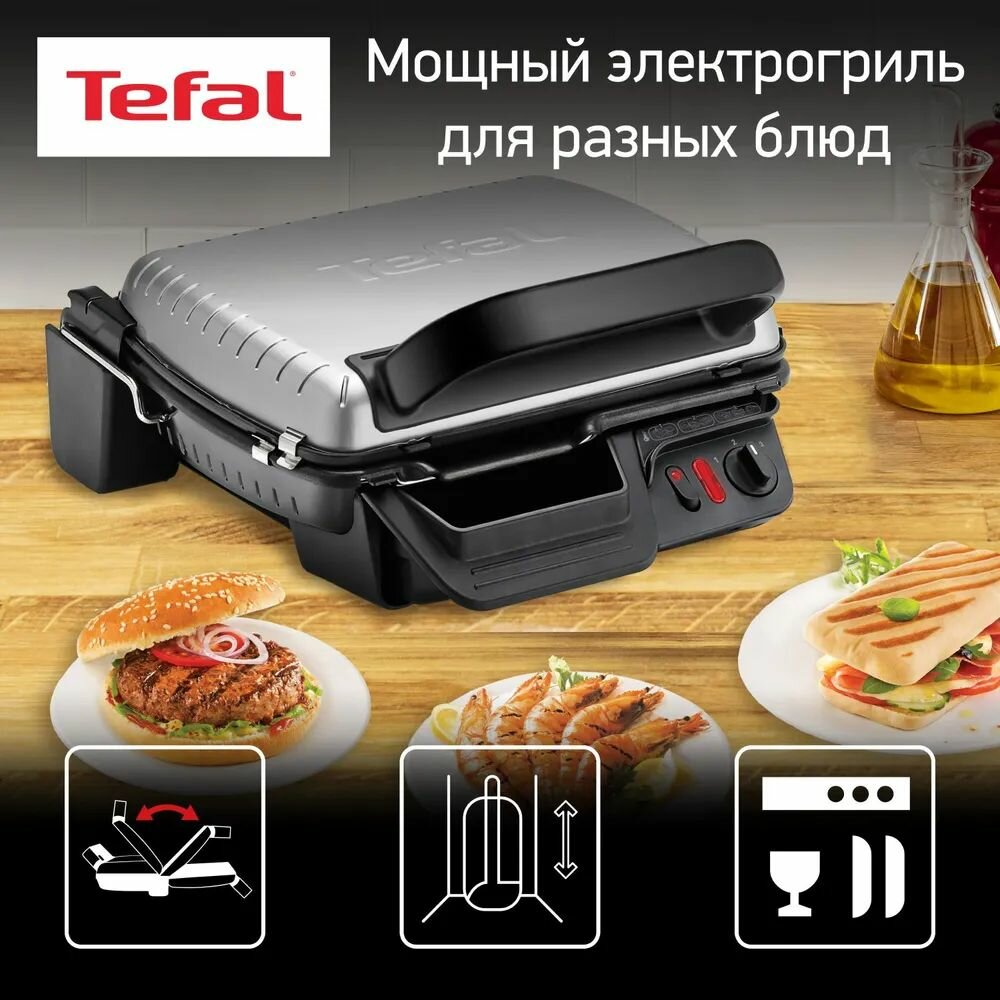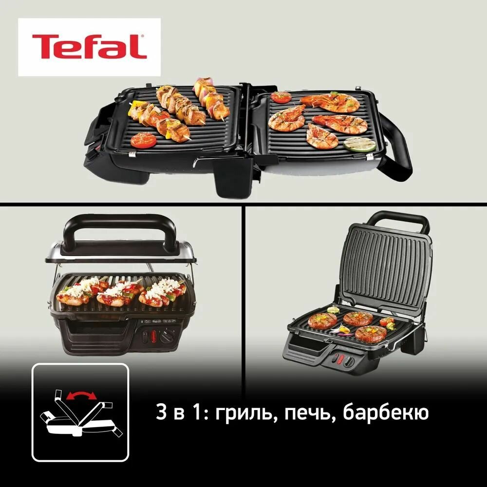 Электрогриль Tefal Health Grill GC306012, 3в1: гриль, барбекю и печь, со съемными антипригарными пластинами, стальной/черный интересное: