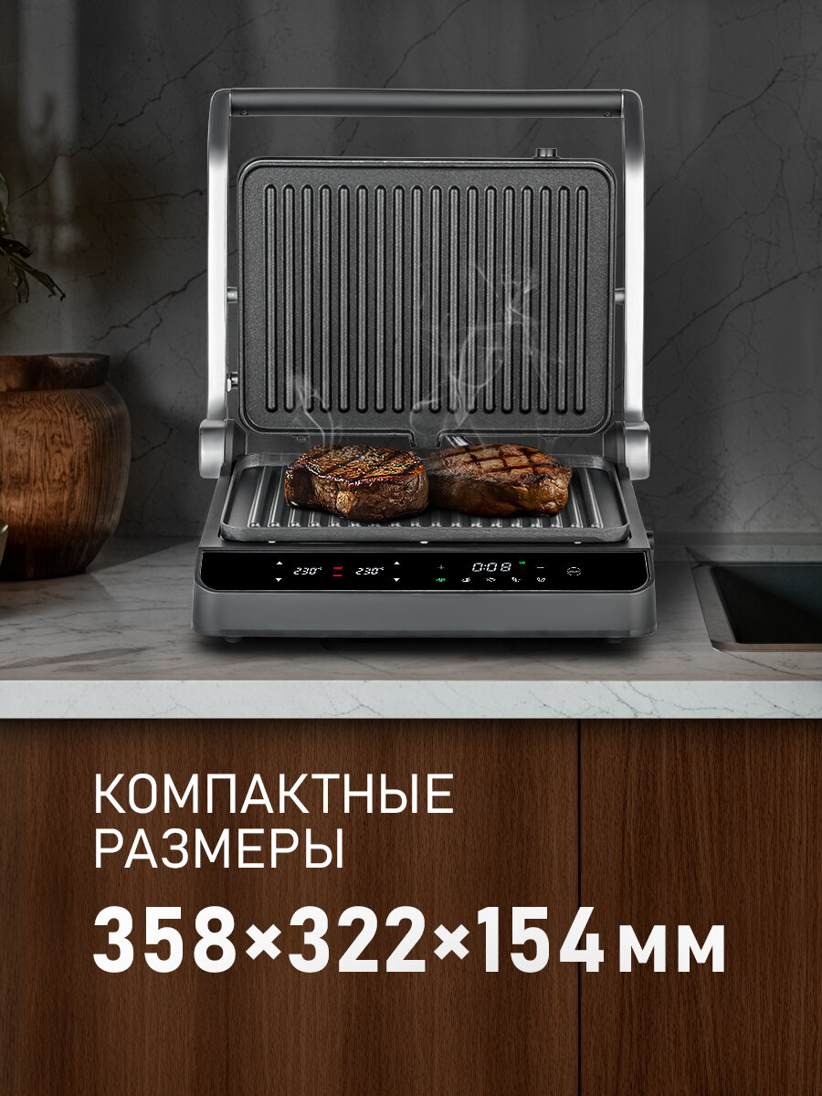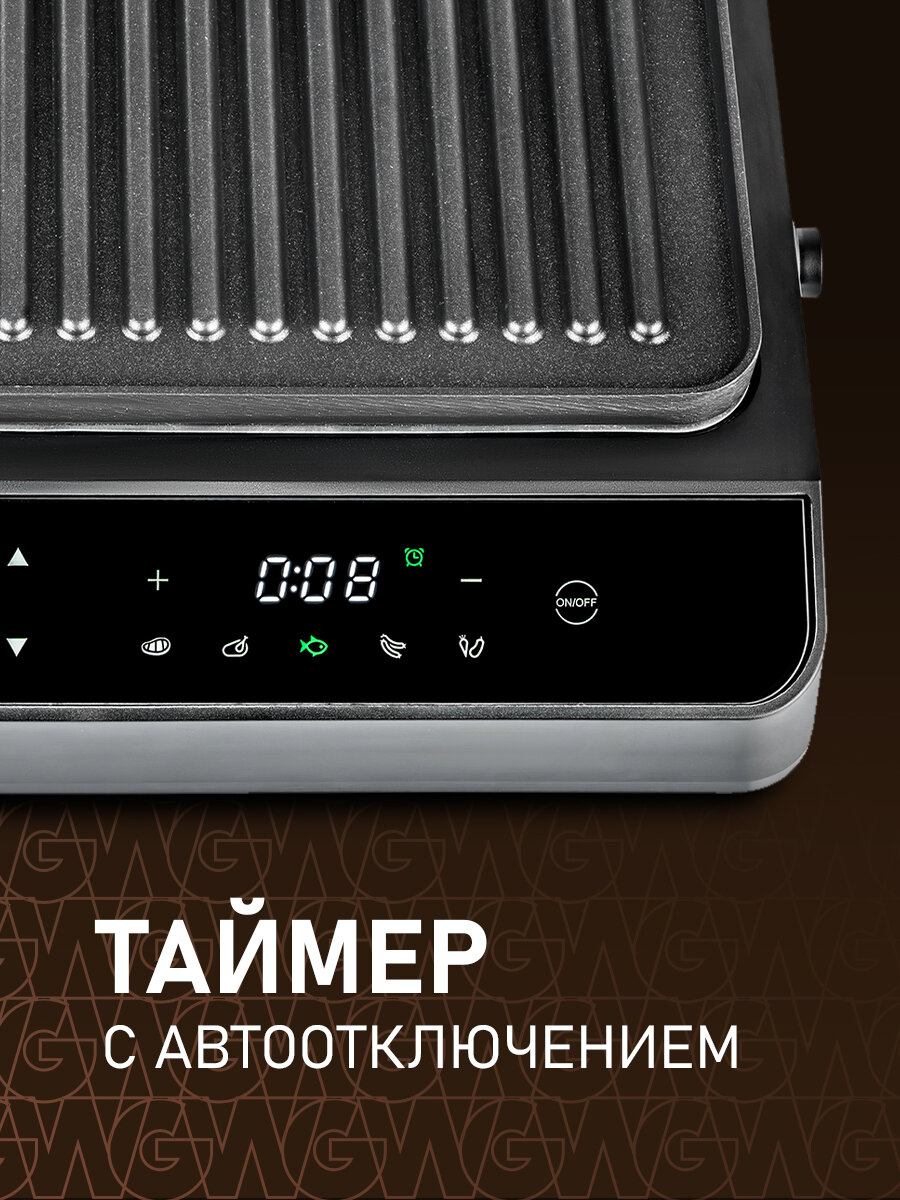 Гриль электрический Weissgauff WCG 250 B Digital Glass, 5 автоматических режимов работы интересное: