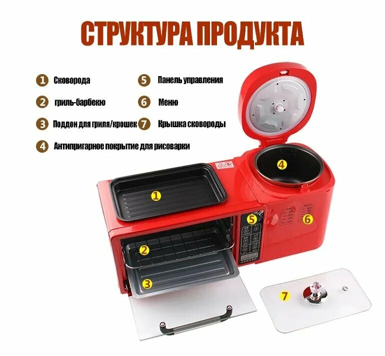 Электрогриль-раклетница "N790", 3 сковороды, 600Вт, сенсорное управление интересное:
