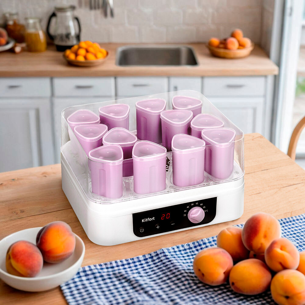 Йогуртница Kitfort КТ-6038, 20 Вт, 200 мл, 4 ёмкости, стекло, белая