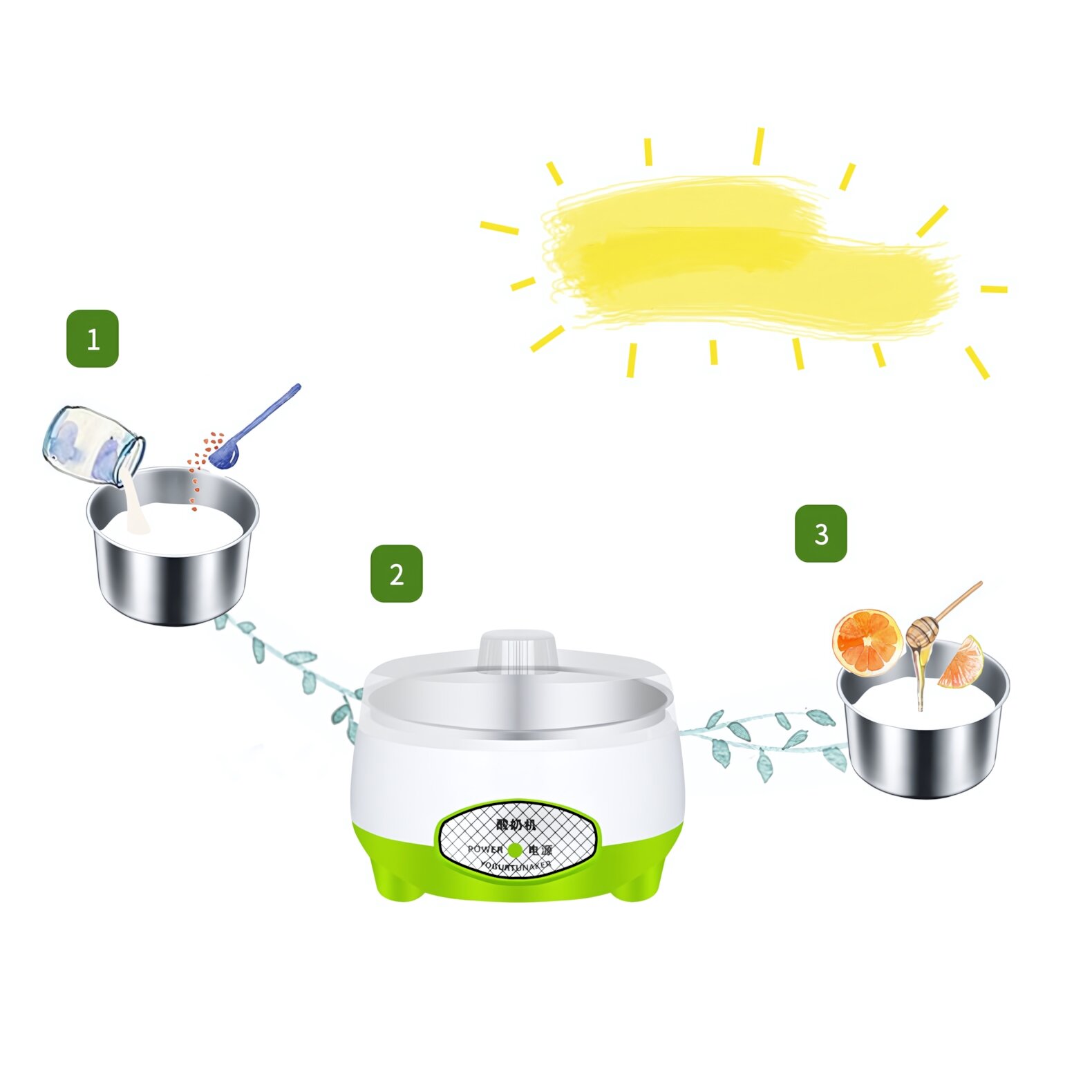 Мини-йогуртница HY-02 с пластиковой чашей, 1 литр, 15 Вт, цвет зеленый
