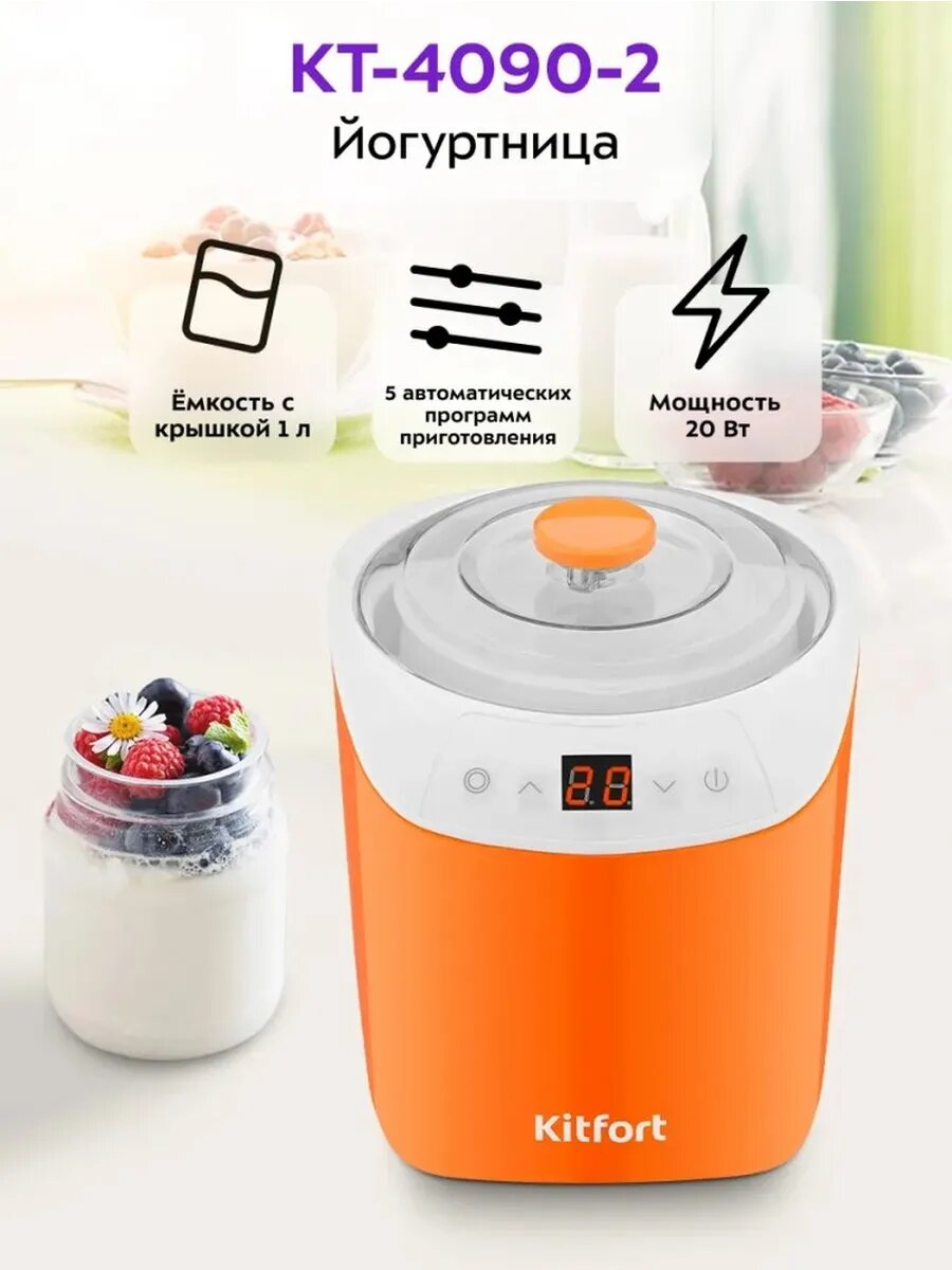 Йогуртница Kitfort КТ-6038, 20 Вт, 200 мл, 4 ёмкости, стекло, белая